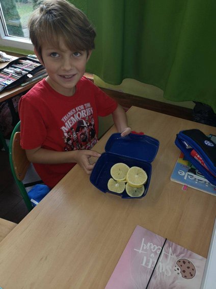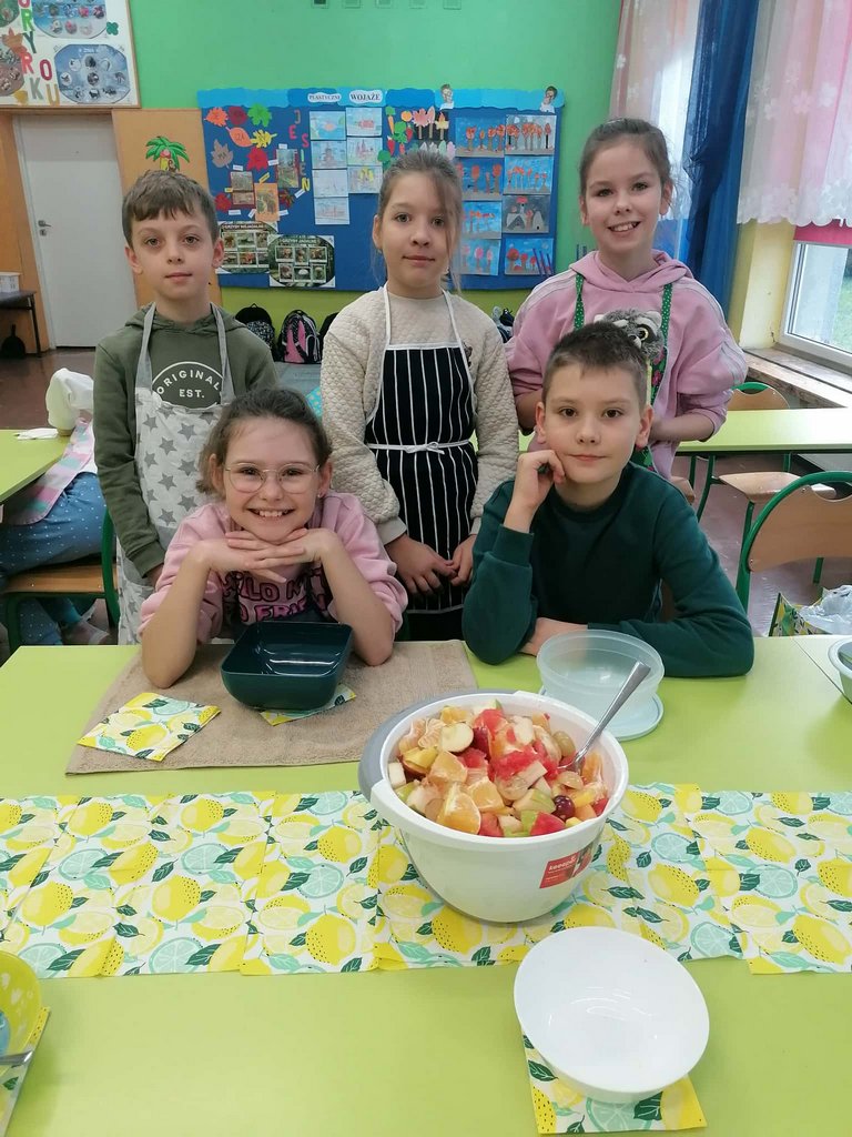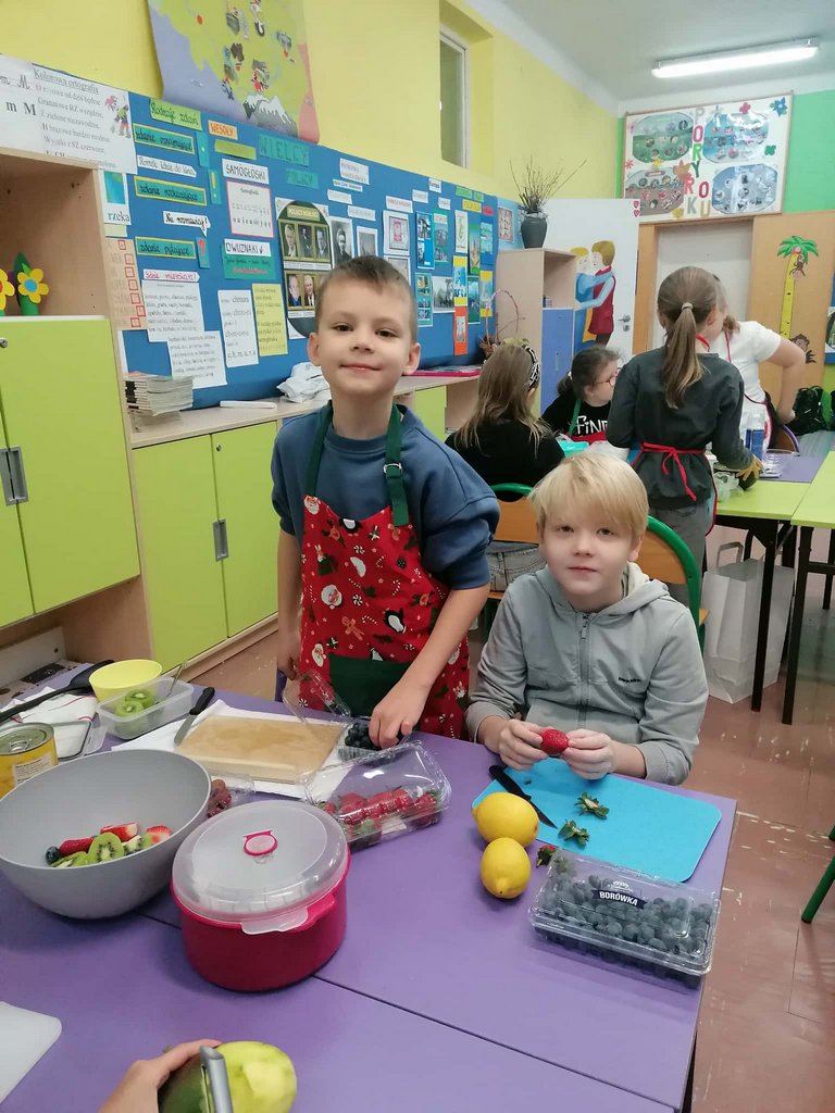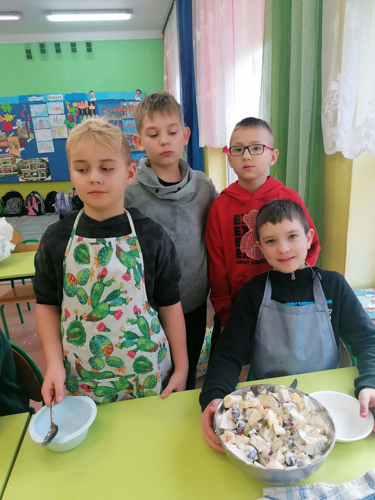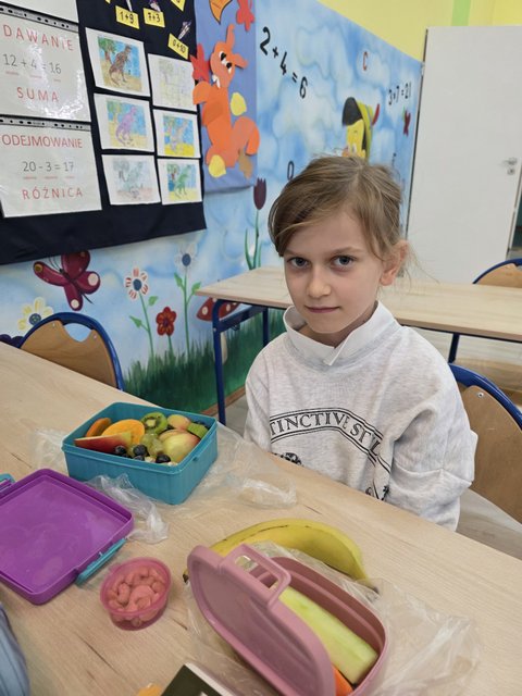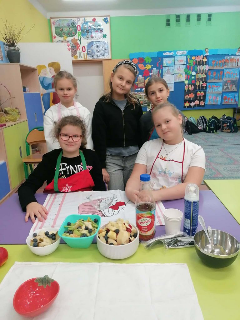 Dnia 19 listopada w naszej szkole odbyła się akcja pt. ,,Owocowa przerwa śniadaniowa’’. Tego dnia każdy uczeń Bajkolandii w swoim pudełku z drugim śniadaniem znalazł ulubiony owoc lub warzywo, które zjadł ze smakiem. W niektórych klasach z pomocą pań wychowawczyń i zaangażowanych rodziców zostały wykonane sałatki owocowe i soki.