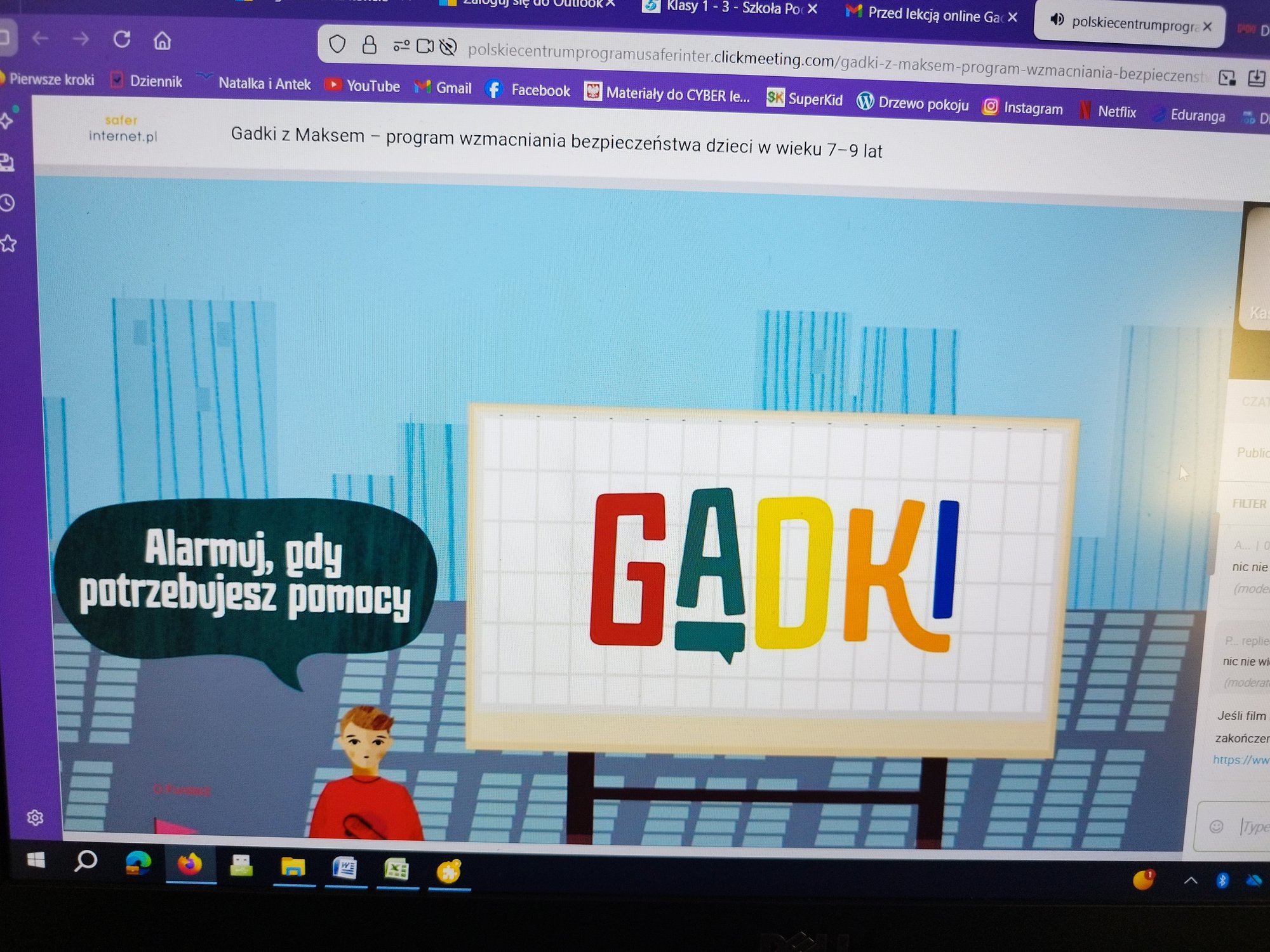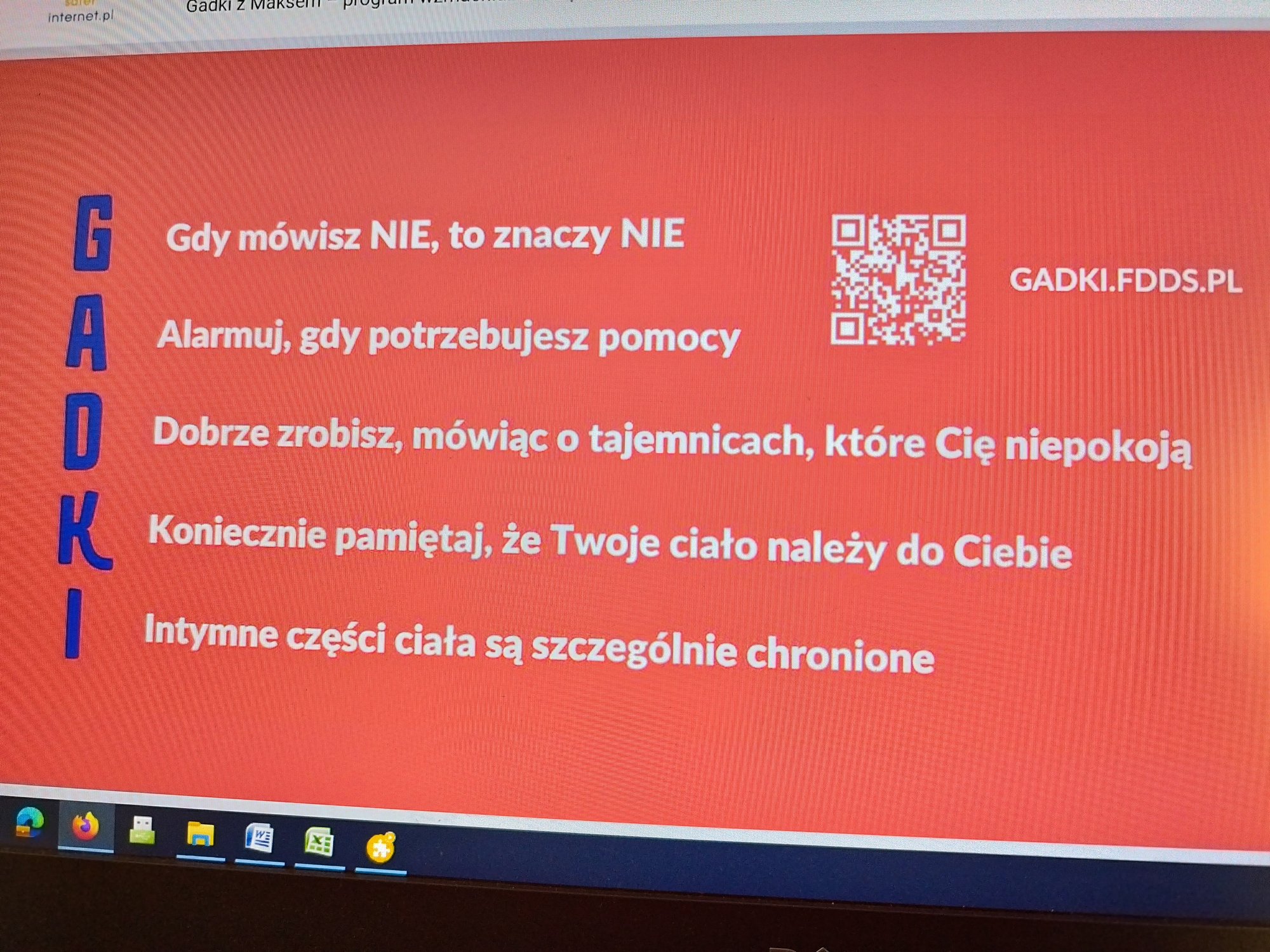 Podczas lekcji prowadzące bazowały na filmie animowanym o tym samym tytule. Przekazały kluczowe zasady rozpoznawania zagrożeń i szukania pomocy w trudnych sytuacjach. Spotkanie miało na celu uwrażliwić dzieci na wczesną identyfikację niepokojących sytuacji, a także wzmocnić w nich poczucie, że są w ich otoczeniu dorośli i instytucje, do których można zwrócić się o pomoc.