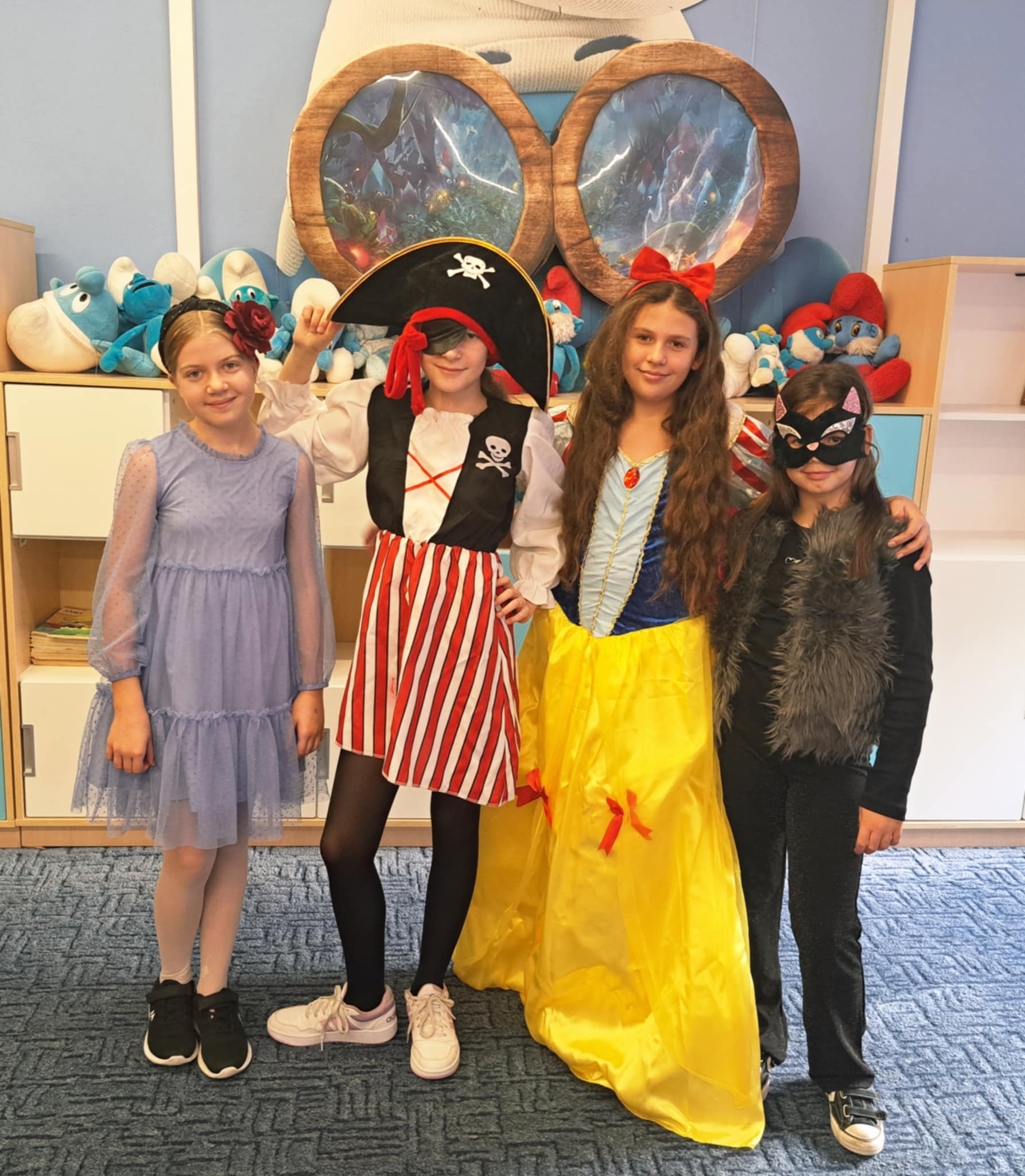 Tego dnia uczniowie przyszli przebrani za swoich ulubionych bohaterów z bajek i baśni – można było spotkać Alicję z krainy czarów, Królewnę Śnieżkę, Spider-Mana, Piratkę, Kota w butach, a nawet Myśliwego z Czerwonego Kapturka. Ten dzień był pełen radości, kolorów i uśmiechu. Dzięki wspólnej zabawie przypomnieliśmy sobie, że bajki uczą nas dobra, odwagi i przyjaźni.