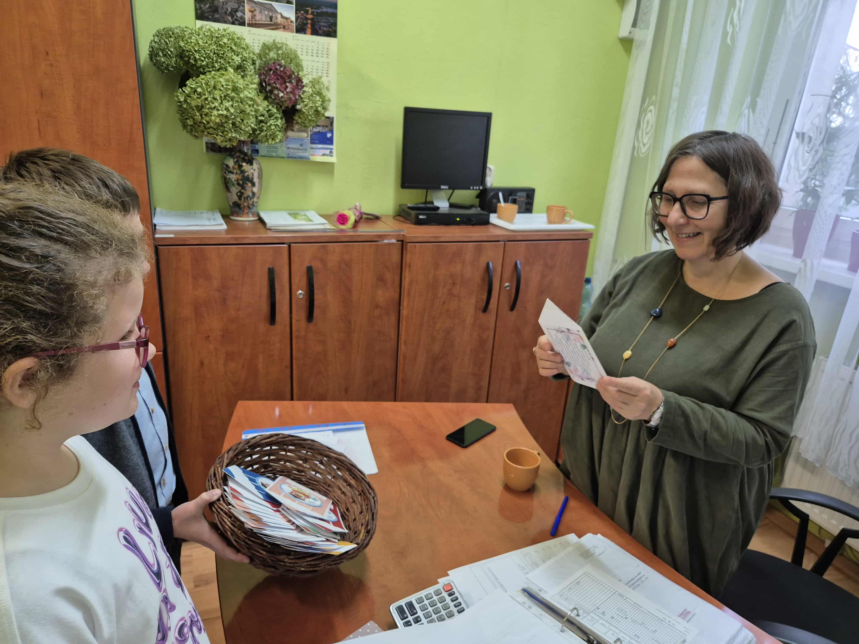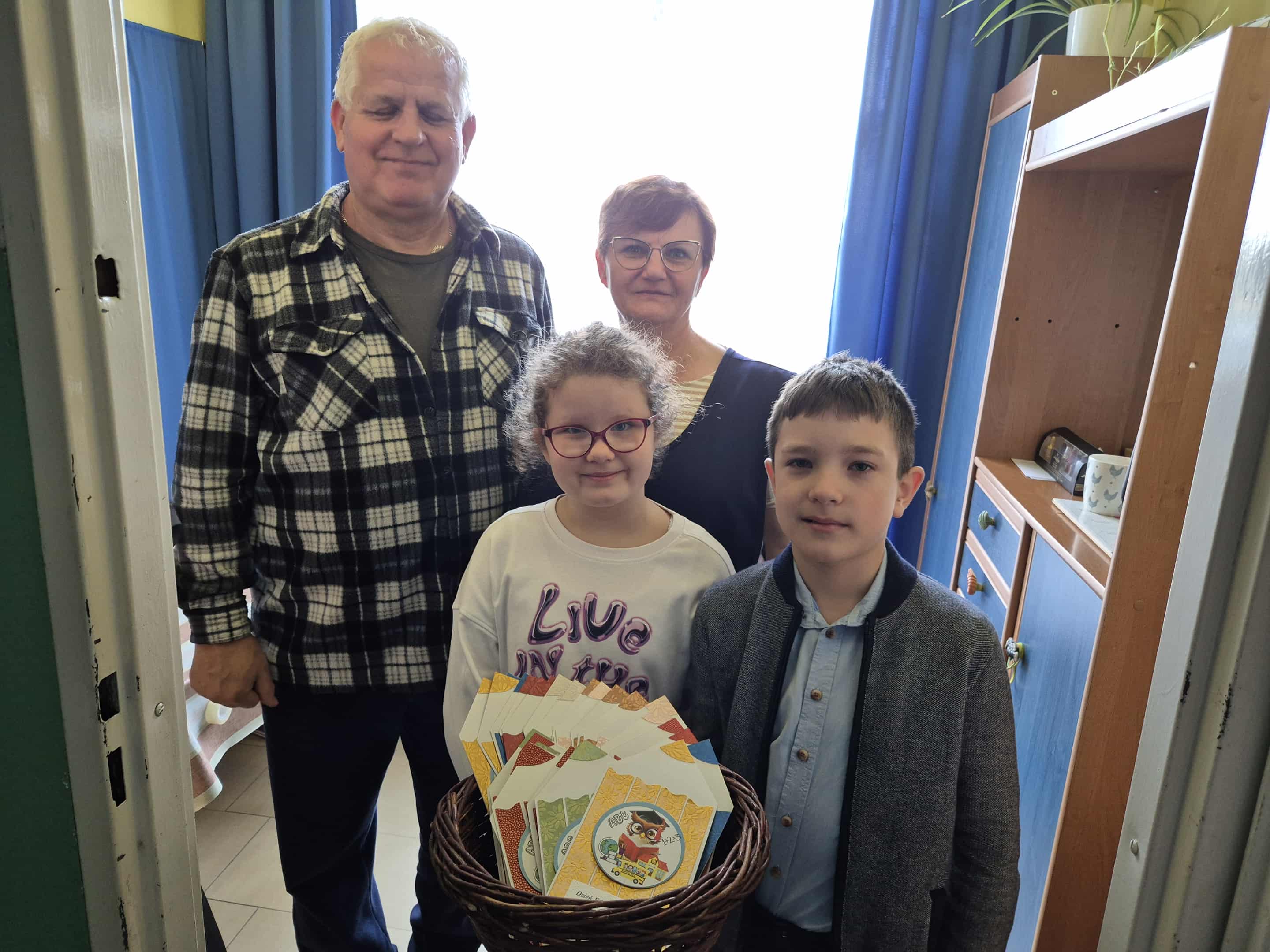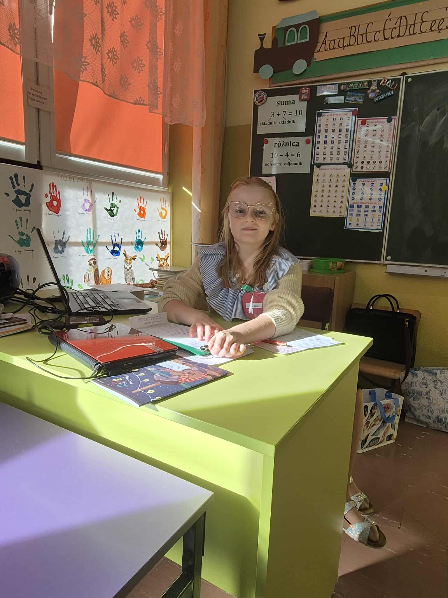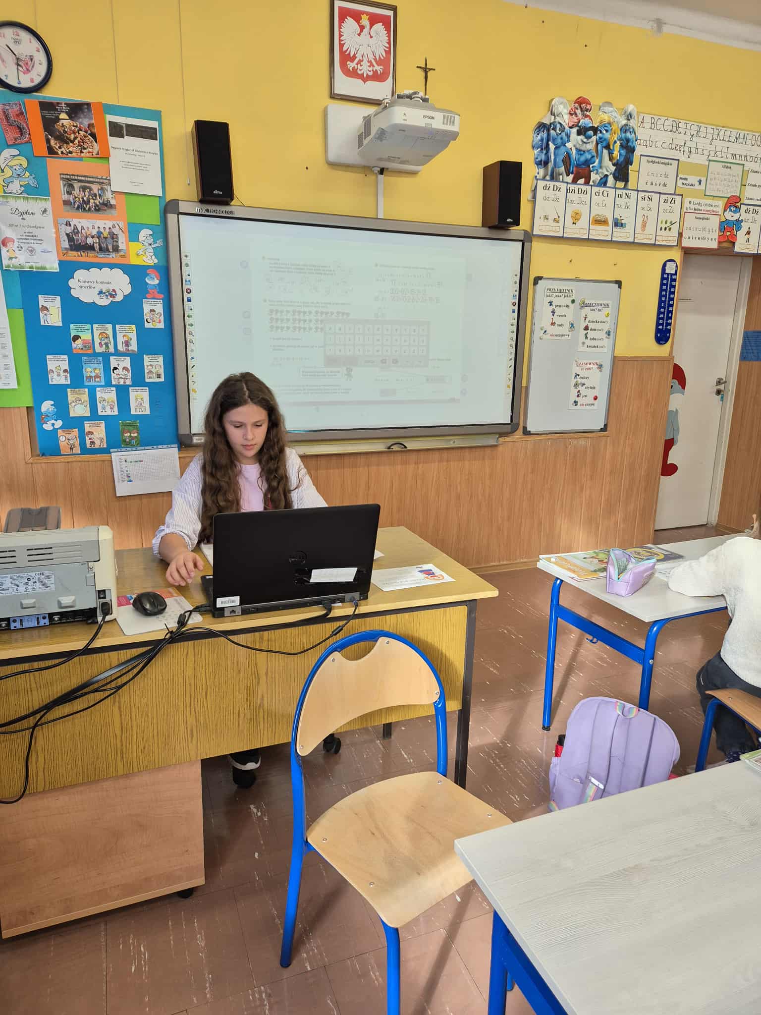Na początek Smerfy z klasy 3b przeprowadziły wywiad z panią dyrektor. Pytania dotyczyły zawodu nauczyciela. Następnie członkowie samorządu złożyli życzenia i wręczyli okolicznościowe kartki wszystkim pracownikom szkoły.