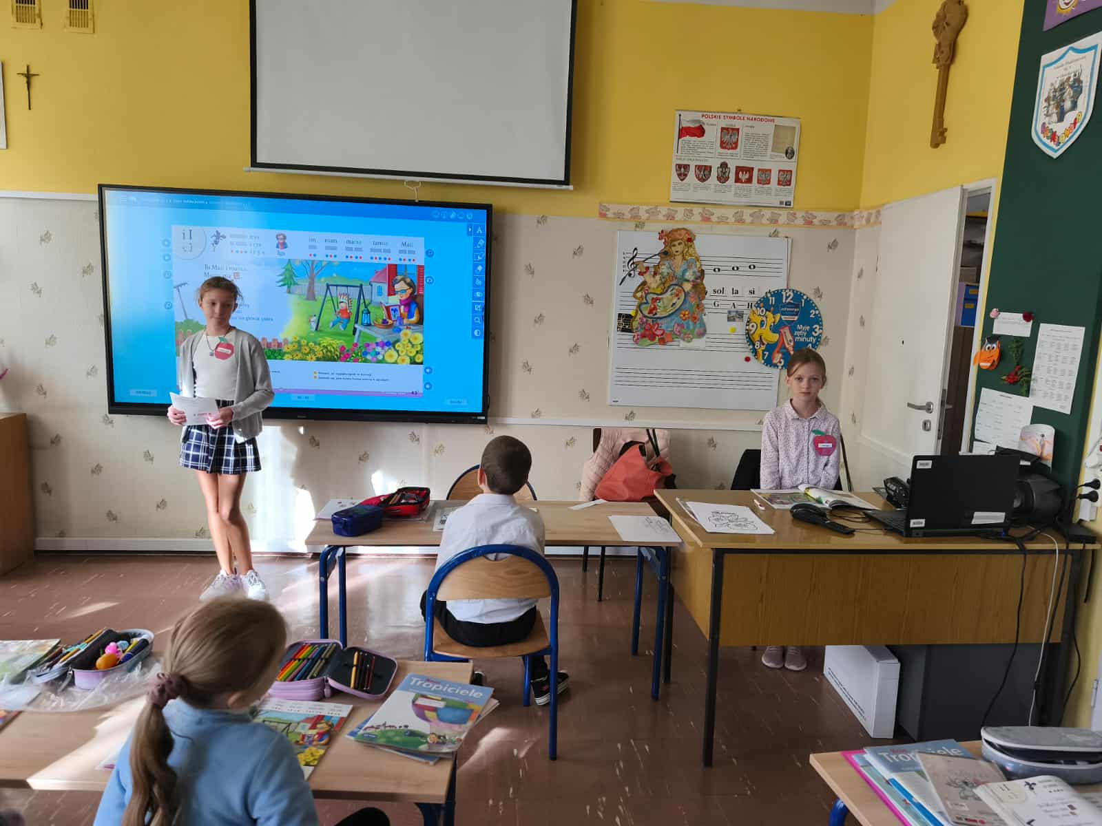 W kolejnej części pani wicedyrektor Dorota Różalska przekazała władzę w ręce przewodniczącej samorządu szkolnego Nadii Zdziarskiej. Przedstawiono też nową "kadrę" Bajkolandii - wybranych uczniów klas 3 i 2, którzy po wcześniejszym przygotowaniu się poprowadzili jedną lekcję w swojej klasie.