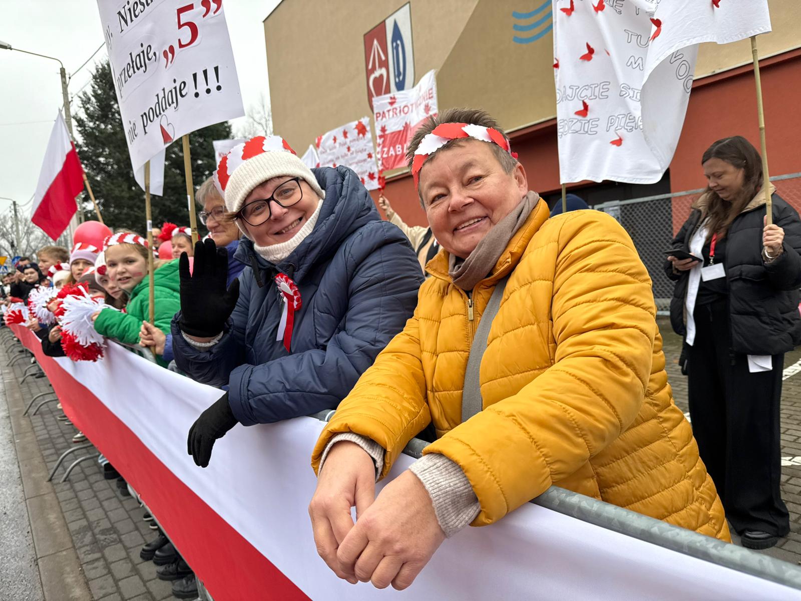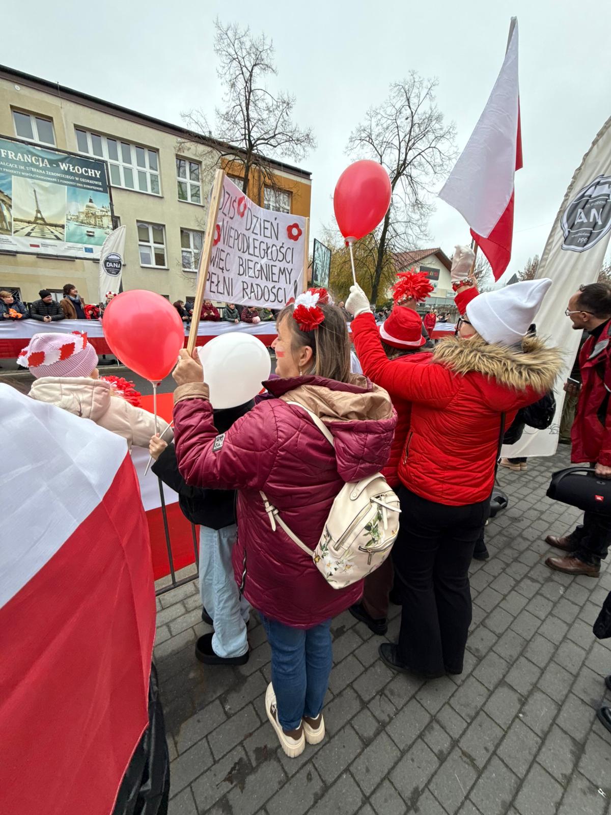 Nasza strefa kibica wspierała zarówno uczestników biegu dla dzieci, jak i dorosłych. Wspólne dopingowanie, kolorowe dekoracje, patriotyczne gadżety oraz entuzjastyczne okrzyki stworzyły niezapomnianą atmosferę wsparcia i radości. Nasi uczniowie, rodzice oraz nauczyciele z zaangażowaniem i pasją dopingowali każdego biegacza, dodając otuchy zarówno najmłodszym, jak i dorosłym uczestnikom. Nasi kibice nie tylko gorąco wspierali biegaczy, ale także aktywnie wzięli udział w wydarzeniu – niektórzy uczniowie i rodzice dołączyli do biegaczy, pokonując odważnie trasy razem z innymi uczestnikami.
