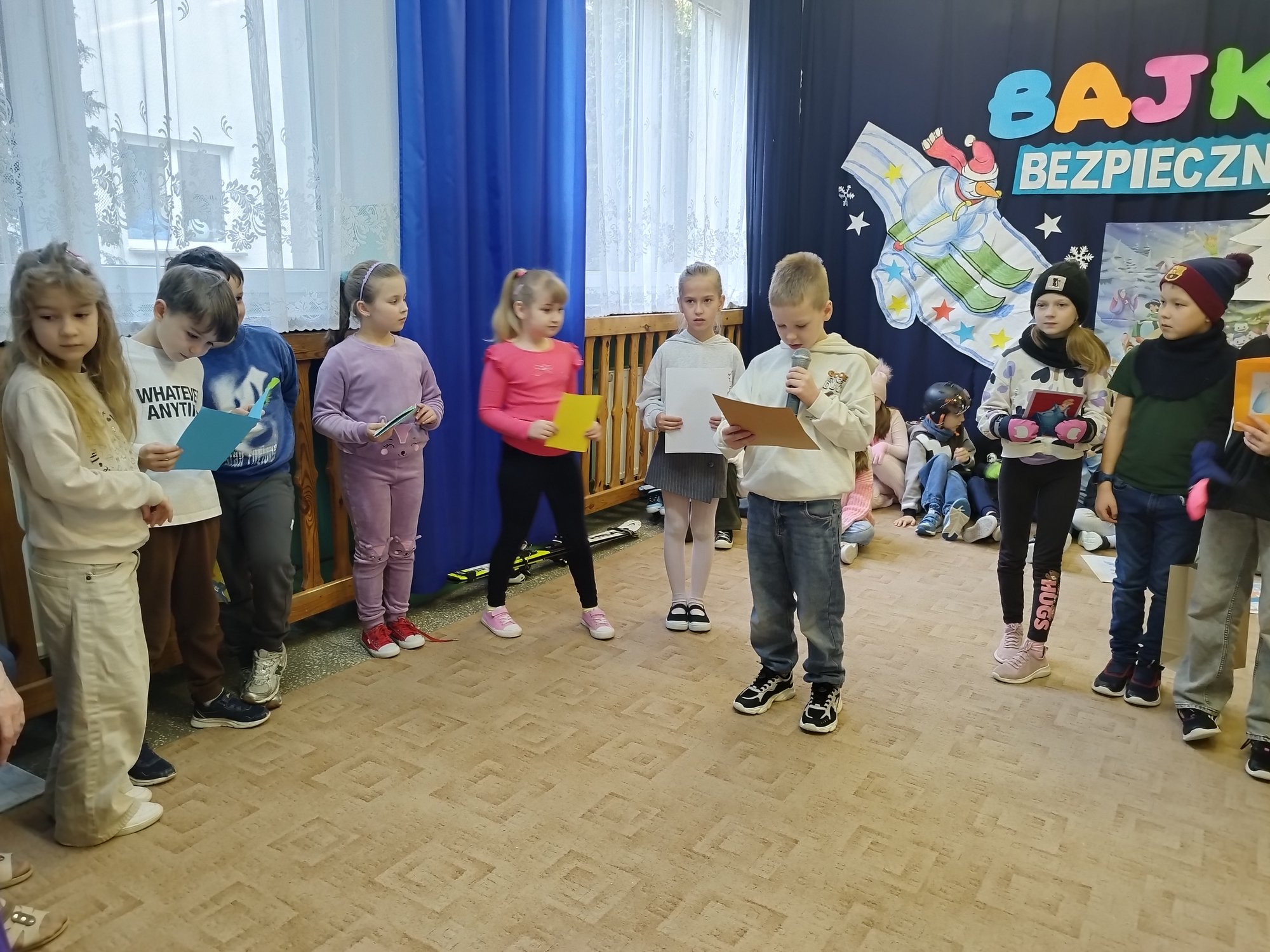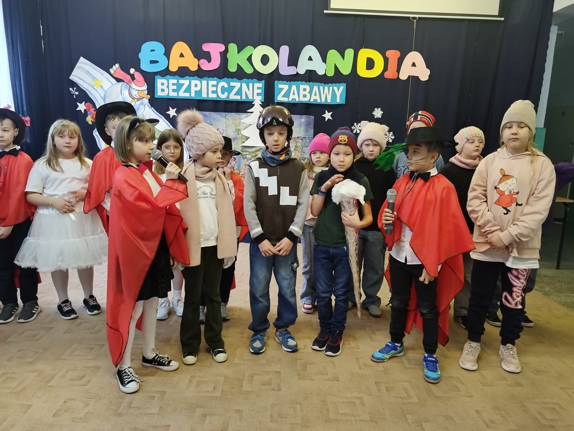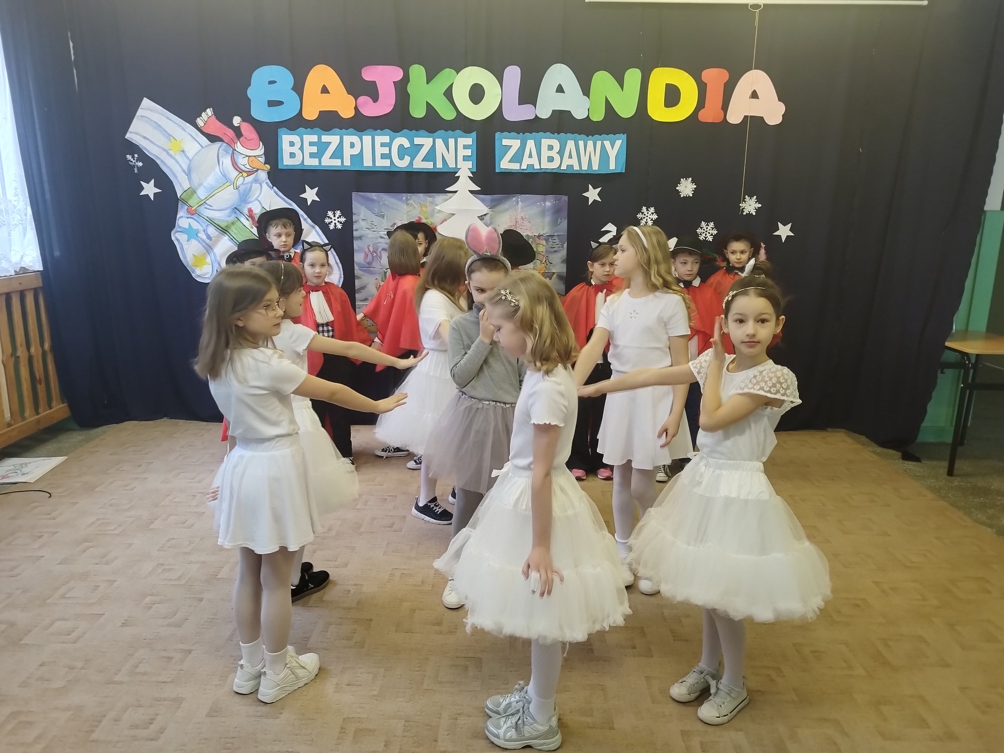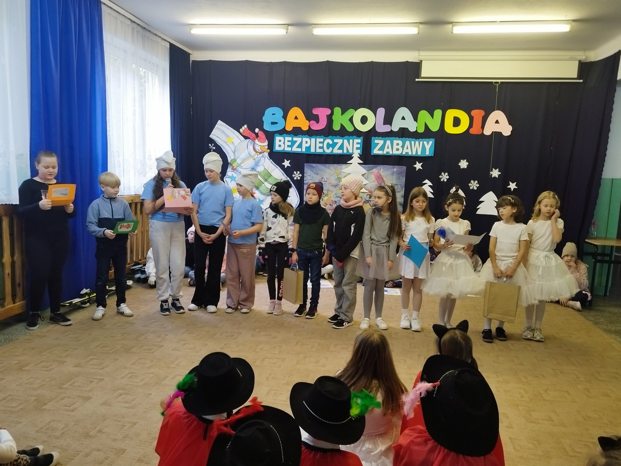 Klasy drugie obchodziły bajkowe imieniny 27 lutego. Uczniowie zaprezentowali inscenizację i piosenki o tematyce bezpiecznych zabaw na śniegu i lodzie. Tak wesoło pożegnali zimę i z utęsknieniem czekają na wiosnę.