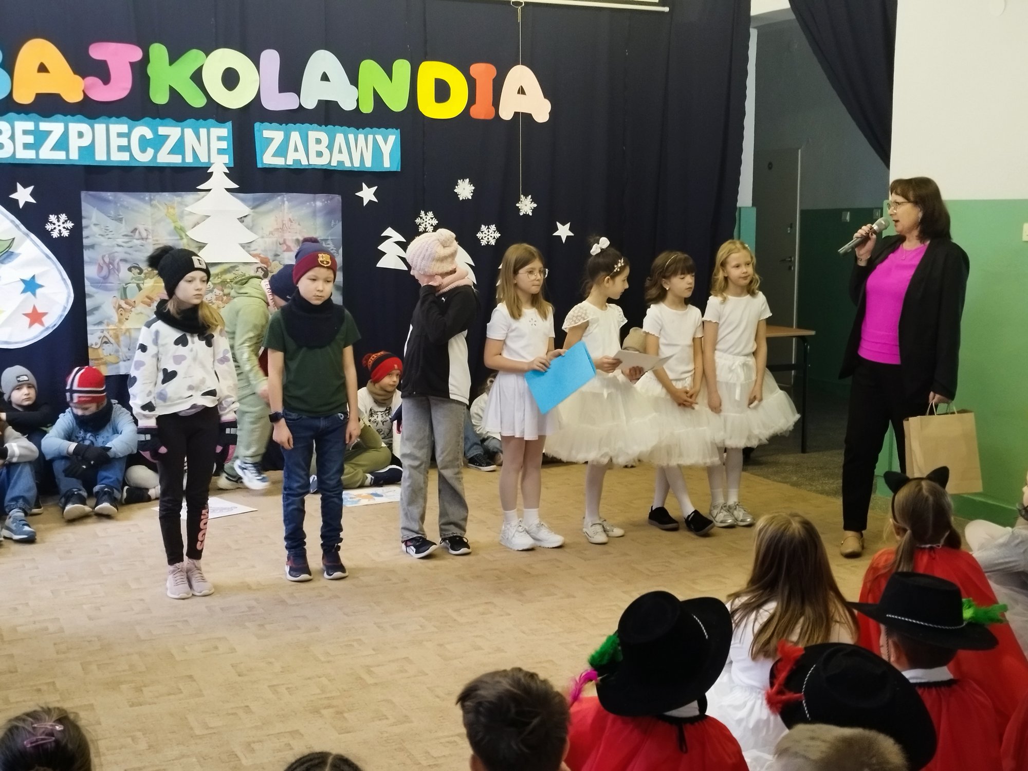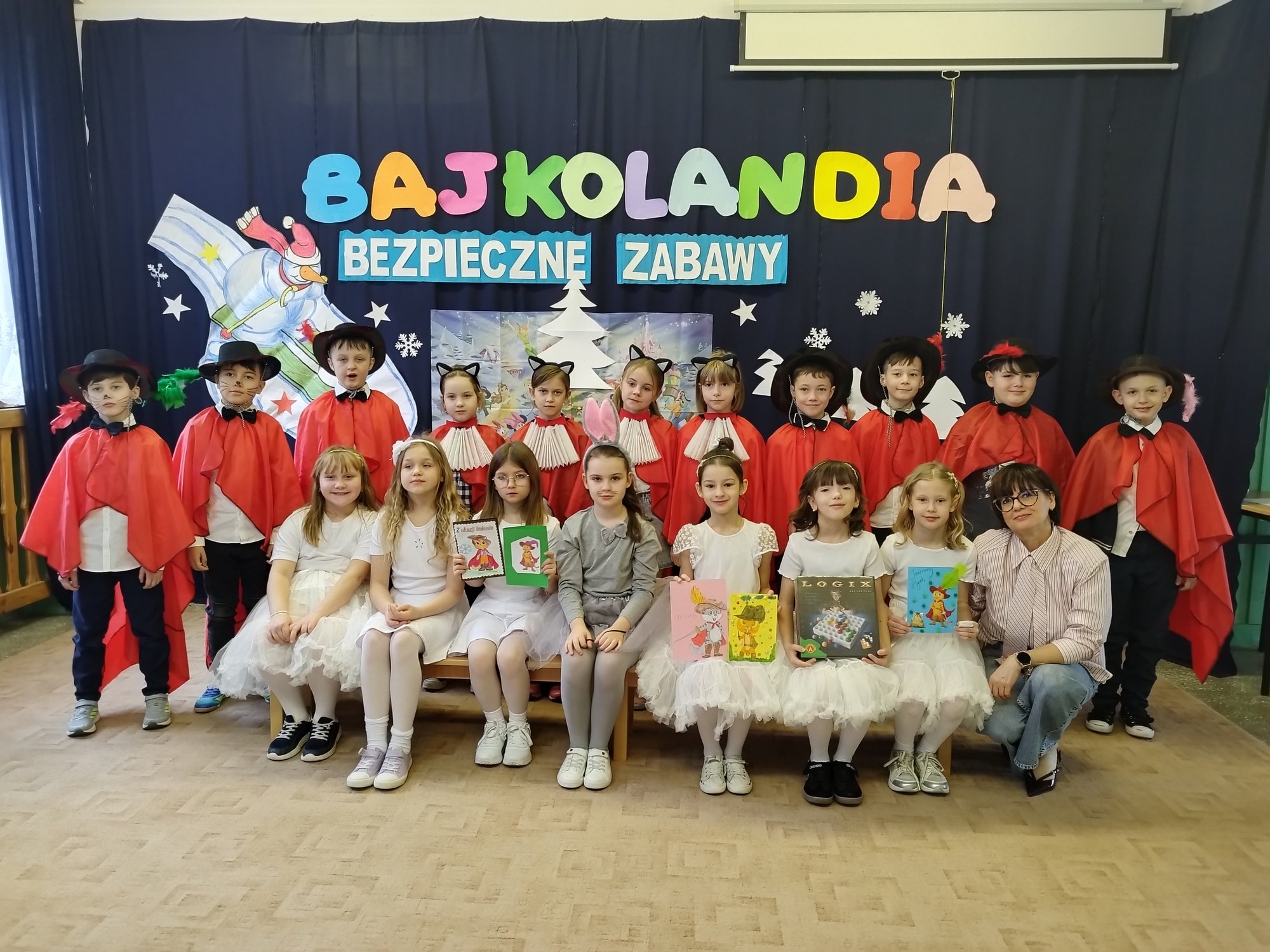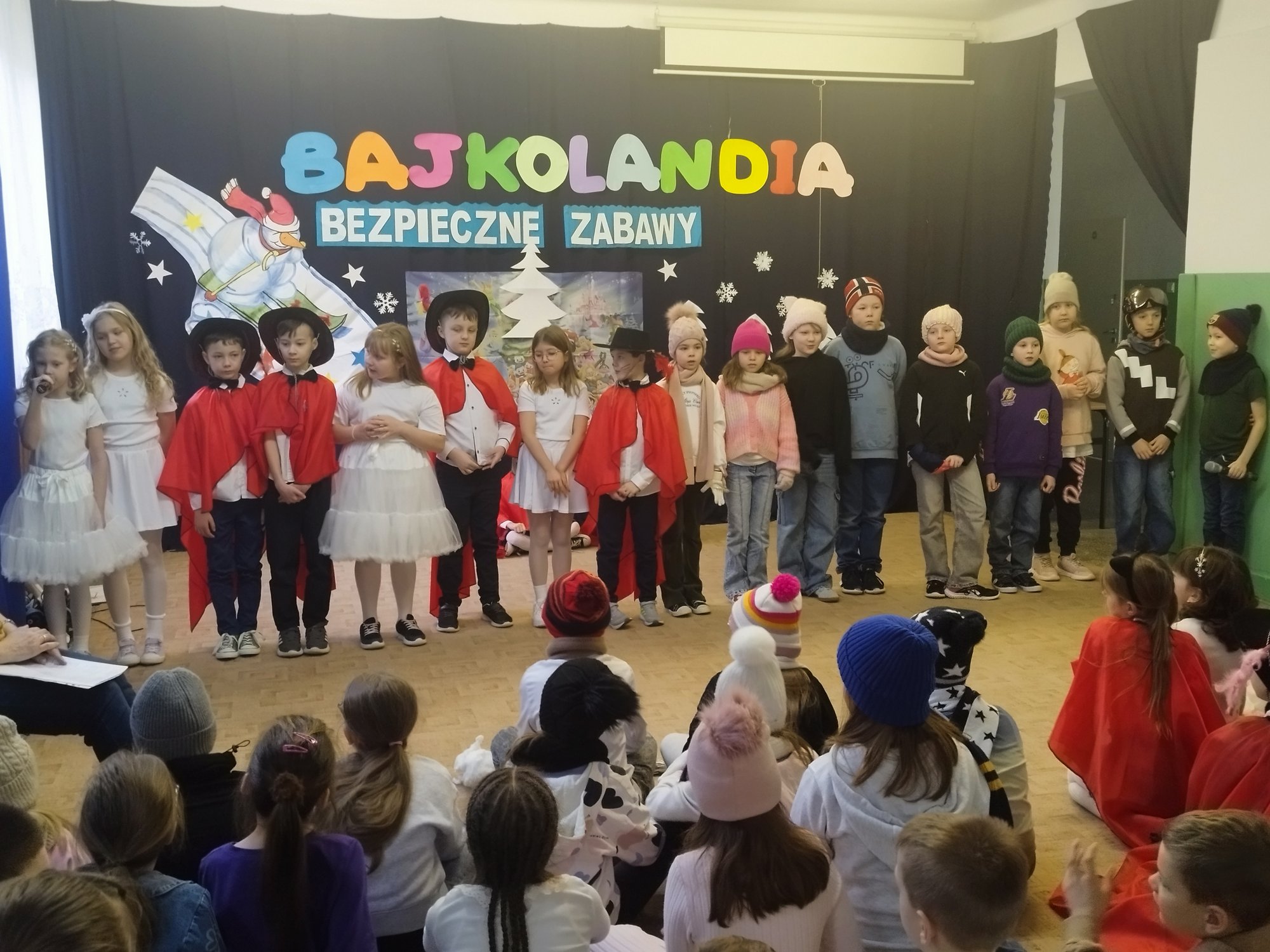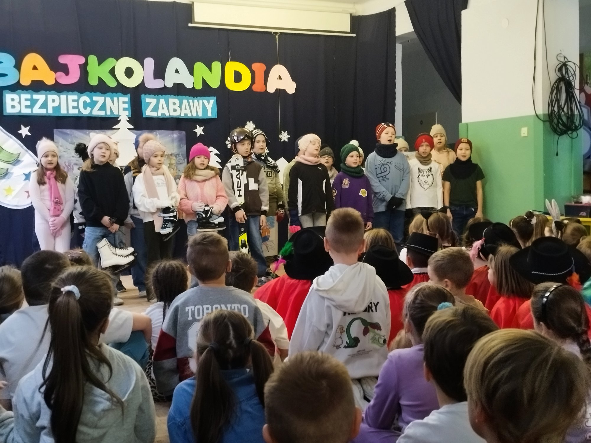 Klasy drugie obchodziły bajkowe imieniny 27 lutego. Uczniowie zaprezentowali inscenizację i piosenki o tematyce bezpiecznych zabaw na śniegu i lodzie. Tak wesoło pożegnali zimę i z utęsknieniem czekają na wiosnę.