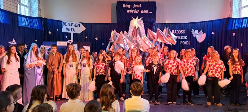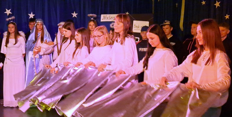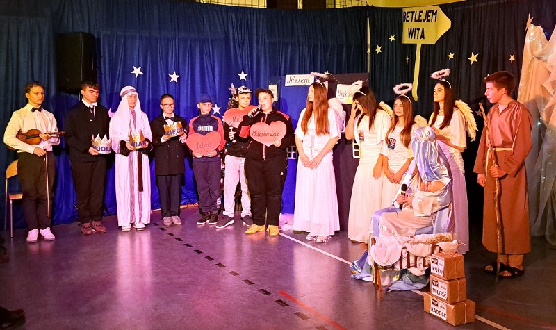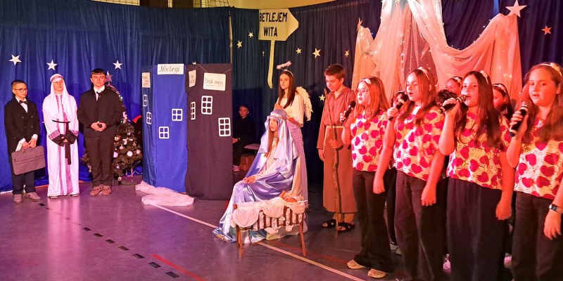 Młodzi artyści z wielkim zaangażowaniem zaprezentowali historię Bożego Narodzenia. Starannie przygotowane role, piękne stroje oraz oprawa muzyczna sprawiły, że występ został nagrodzony gromkimi brawami. Przedstawienie niosło ze sobą przesłanie miłości, pokoju i wzajemnej życzliwości, które szczególnie mocno wybrzmiewa w okresie świąt.