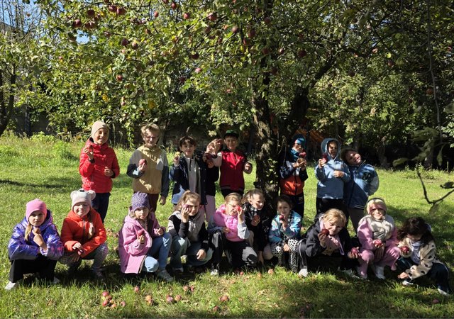 Ostatnio uczniowie klasy 2a gościli w sadzie. Podziwiali piękne jabłonie i ich dorodne jabłka. Wszyscy byli zauroczeni urokiem drzew i mogli poczuć zapach jabłek. W słońcu zaś dzieci zauważyły różne odcienie czerwieni i żółci mieniących się owoców.