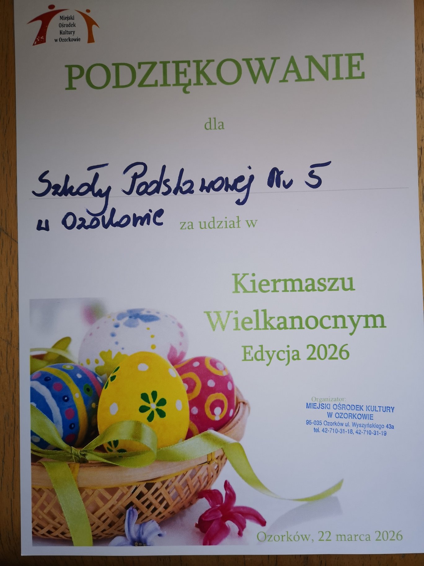 Uczniowie klasy 1b gościnnie wystąpili na tegorocznym Kiermaszu Wielkanocnym. Zaprezentowali swoje zdolności recytatorskie, a soliści zespołu PIANO wykonali utwory o tematyce świątecznej.