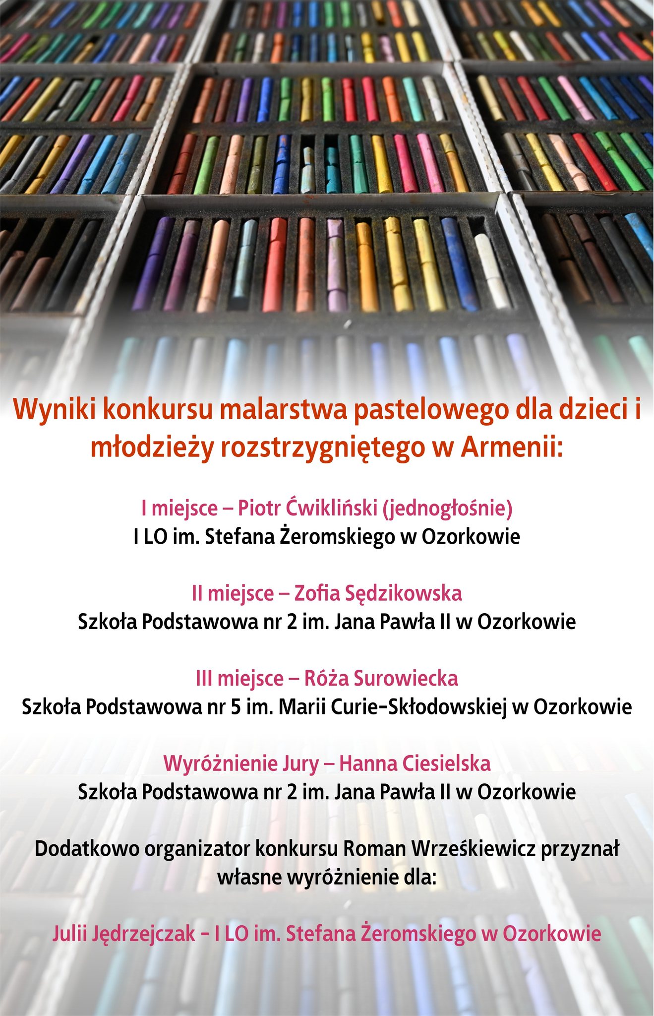 W Armenii zostało zaprezentowane malarstwo pastelowe dzieci i młodzieży z Ozorkowa, a międzynarodowe Jury wytypowało kilka najlepszych prac. Rozstrzygnięcie miało miejsce 9 listopada 2025 r.