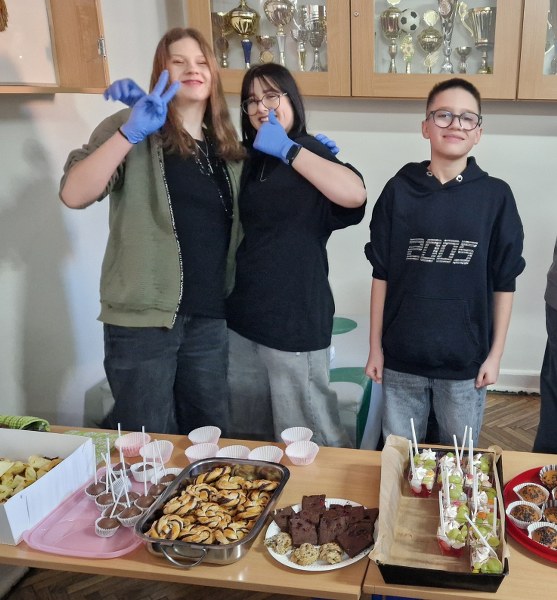 6 marca 2026 r. w naszej szkole odbył się mini kiermasz słodkości zorganizowany przez samorząd uczniowski. Wydarzenie zostało przygotowane przez uczennice klasy 8b, 7c oraz 6b. Na stołach kiermaszowych pojawiło się wiele pysznych słodkości. Uczniowie przynieśli między innymi różnorodne ciasta, kruche ciasteczka, kolorowe babeczki, a także galaretki i deserki z bitą śmietaną i owocami. Kiermasz spotkał się z bardzo ciepłym przyjęciem. Uczniowie, nauczyciele oraz pracownicy szkoły chętnie odwiedzali stoisko i wspierali akcję, kupując przygotowane przysmaki. Dzięki wspólnemu zaangażowaniu udało się zebrać 910,44 zł.
