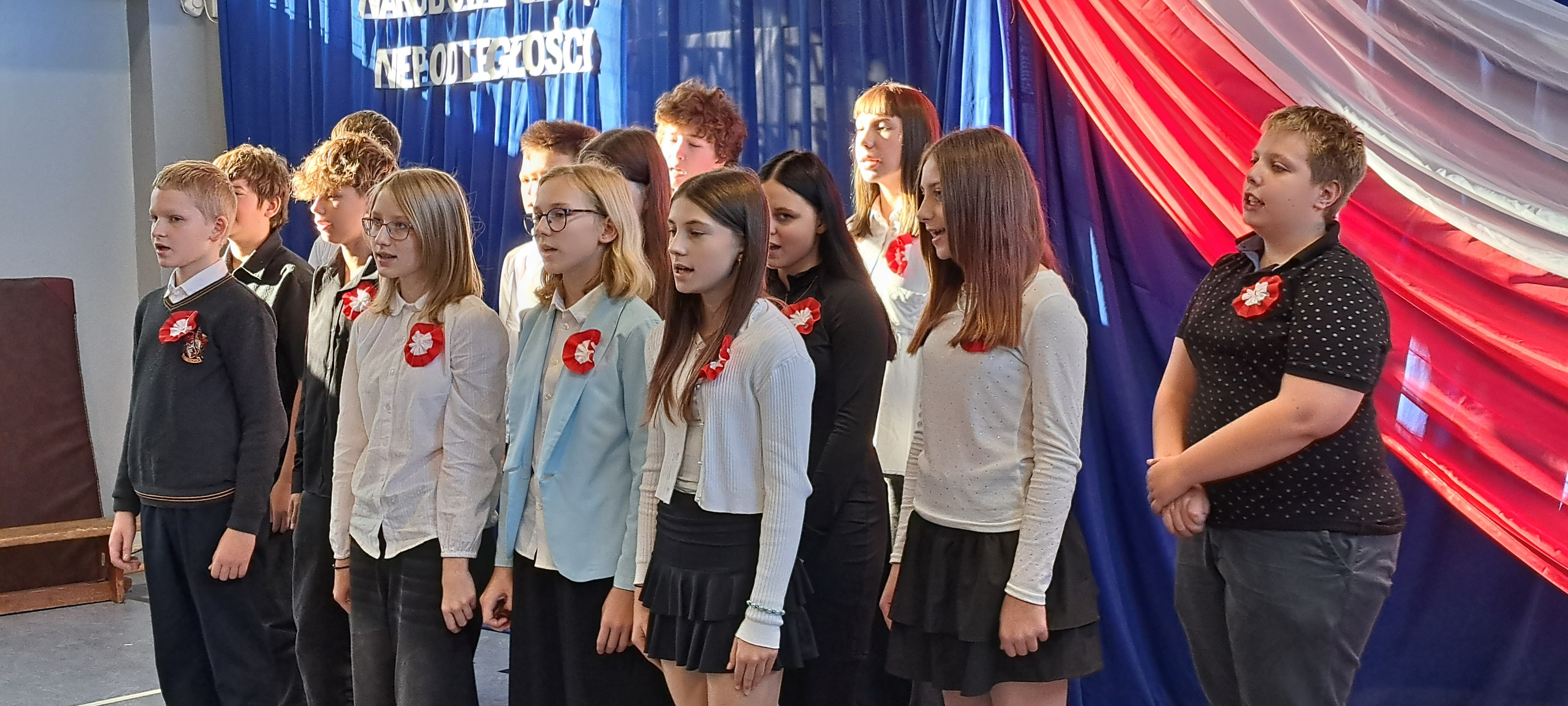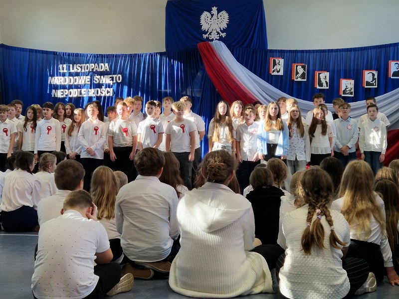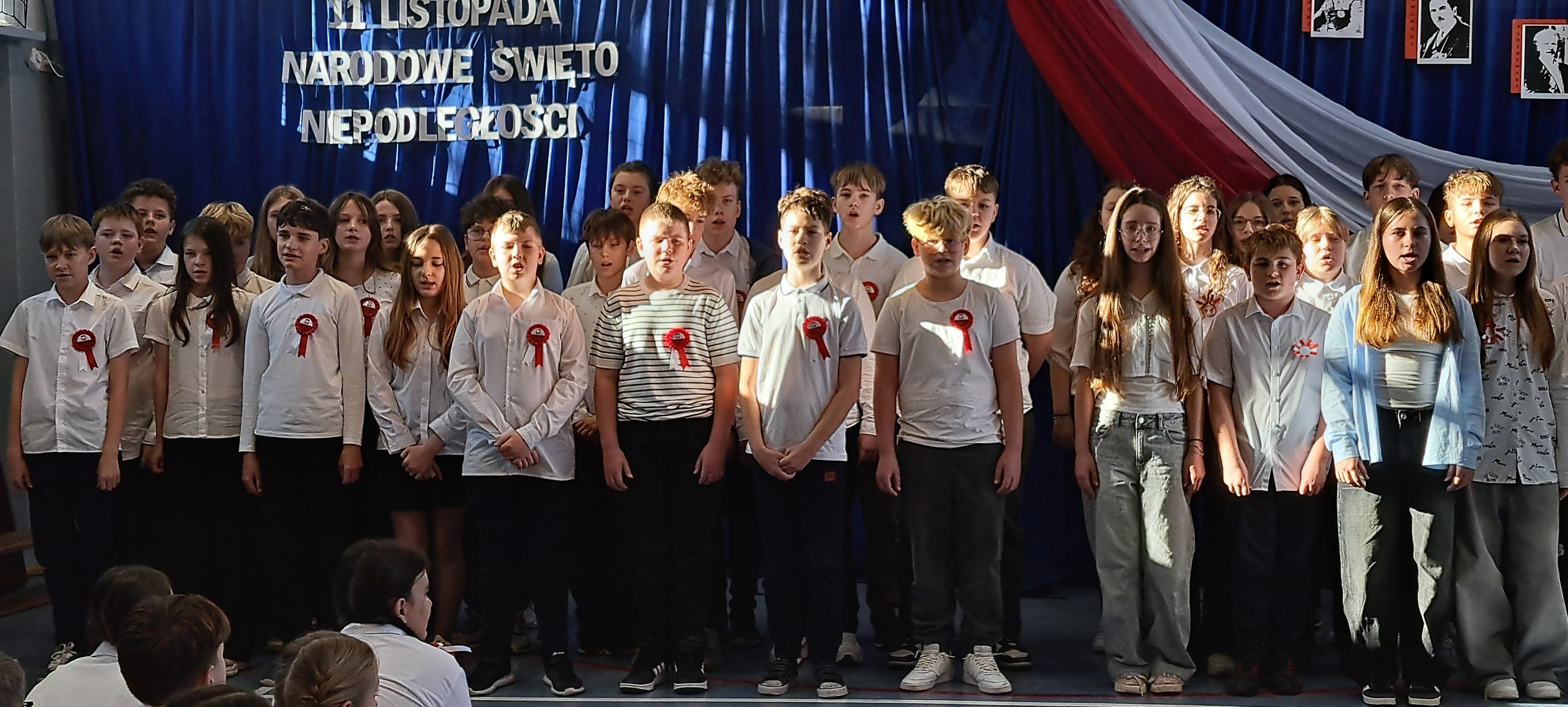 Dnia 7 listopada 2025 roku w naszej szkole odbył się uroczysty apel poświęcony 107 rocznicy odzyskania przez Polskę niepodległości. Zgodnie z wieloletnią tradycją uczniowie poszczególnych klas przygotowali pieśni związane z tym okresem historycznym. Wspólnie śpiewaliśmy „Legiony”, „Przybyli ułani”, czy pieśń „Szara piechota”. Apel rozpoczął „Mazurek Dąbrowskiego”, odśpiewany zgodnie z tradycją w ramach akcji „Szkoła do hymnu”, a zakończyła „Rota”. Była to wspaniała lekcja historii i patriotyzmu, tak potrzebna w dzisiejszych, trudnych czasach.