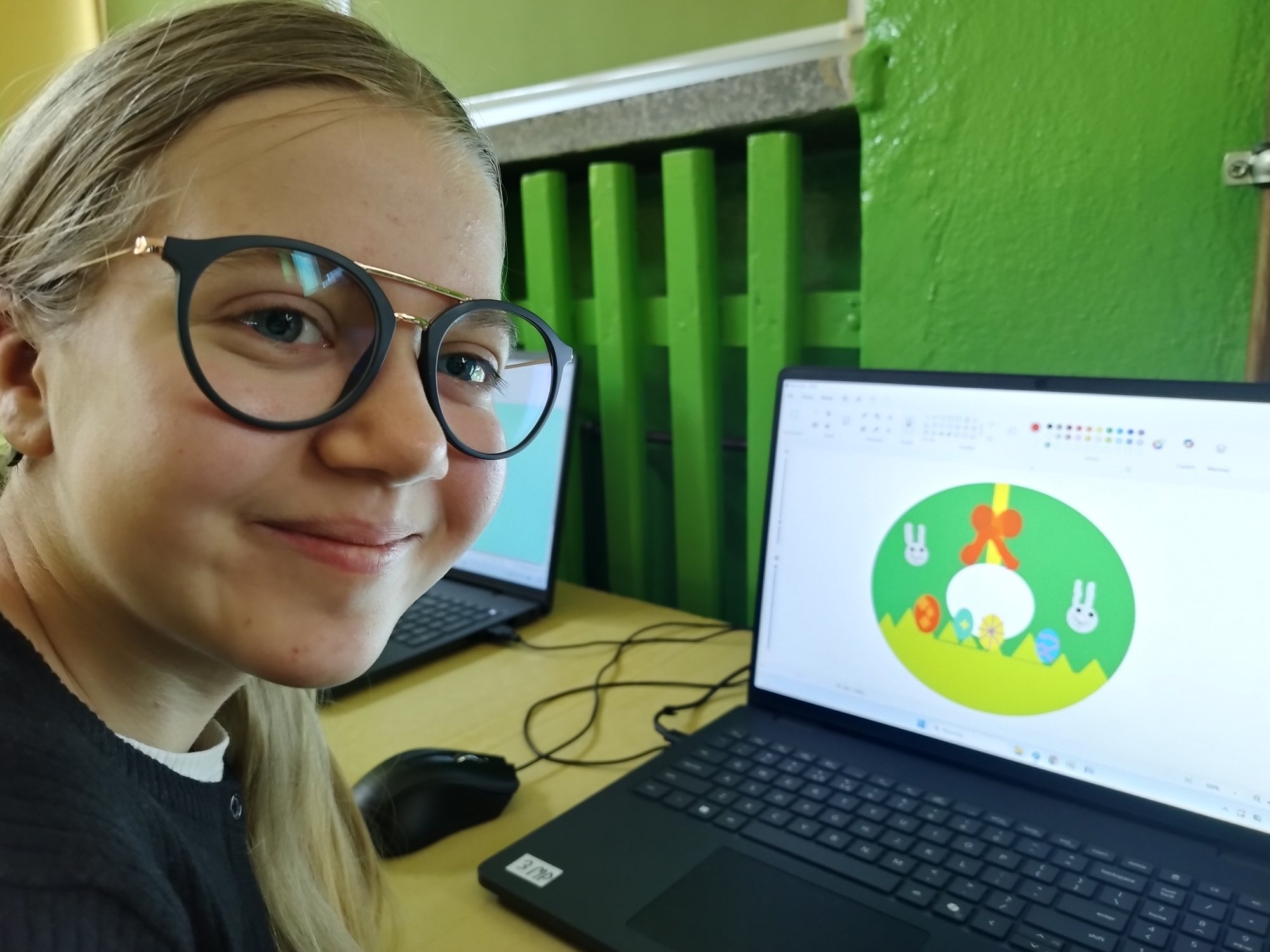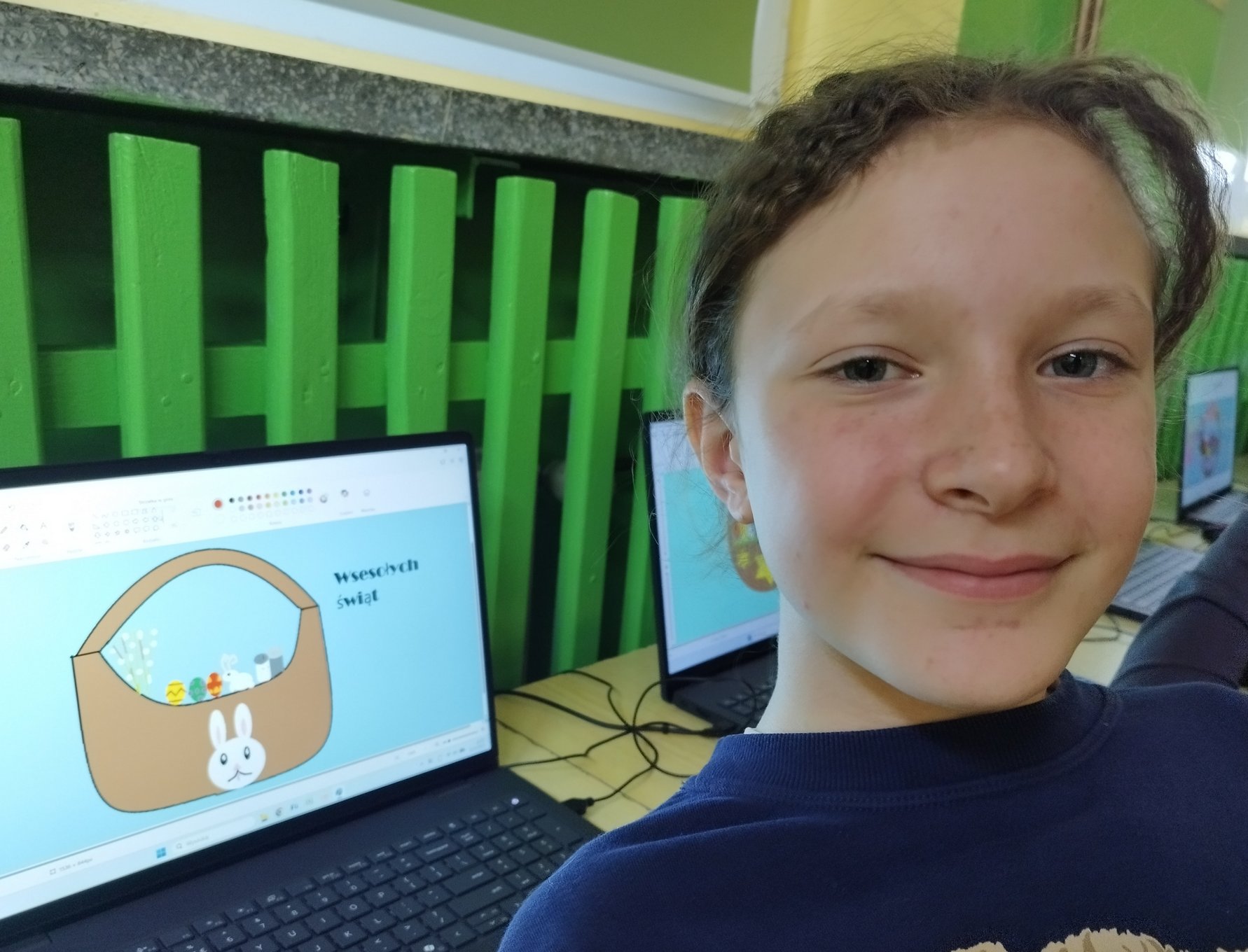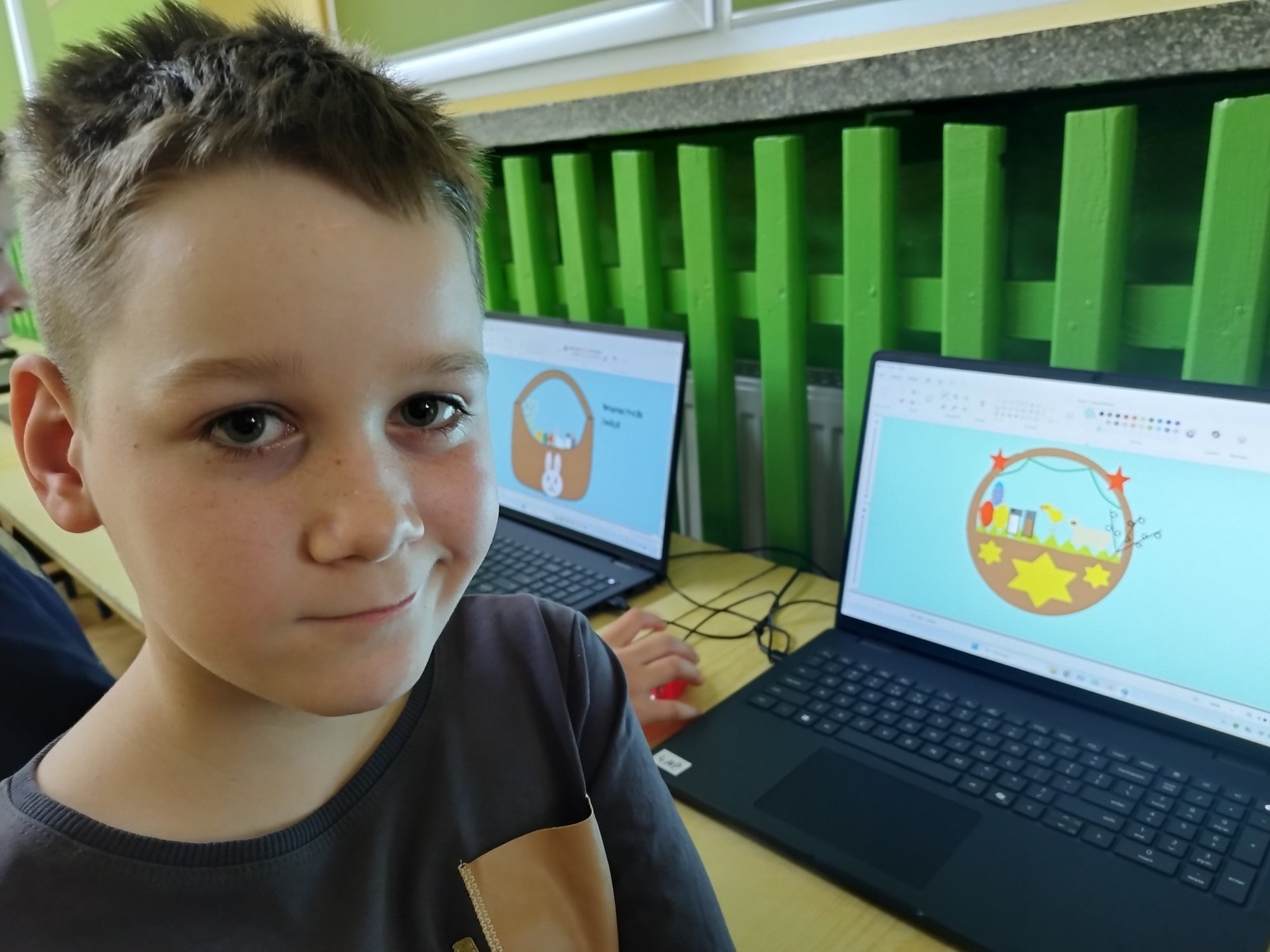 W pracowni komputerowej pojawiły się nowe laptopy. Smerfy z klasy 3 b wypróbowały je, tworząc graficzne prace wielkanocne.