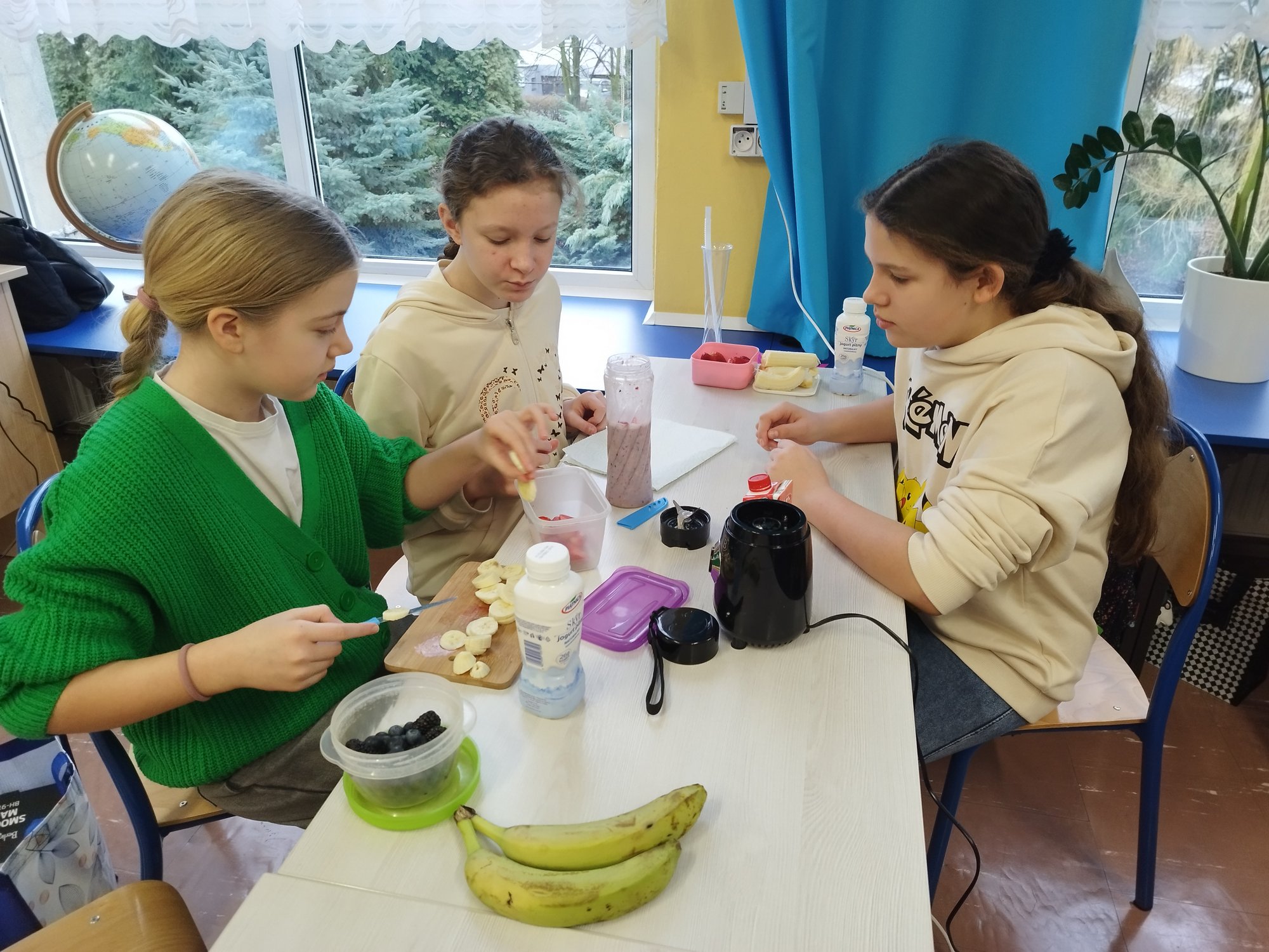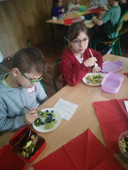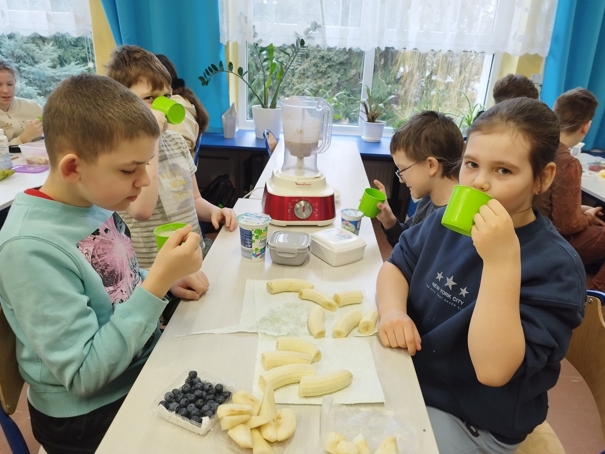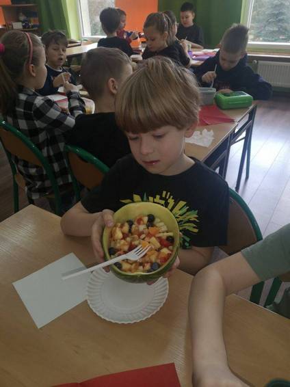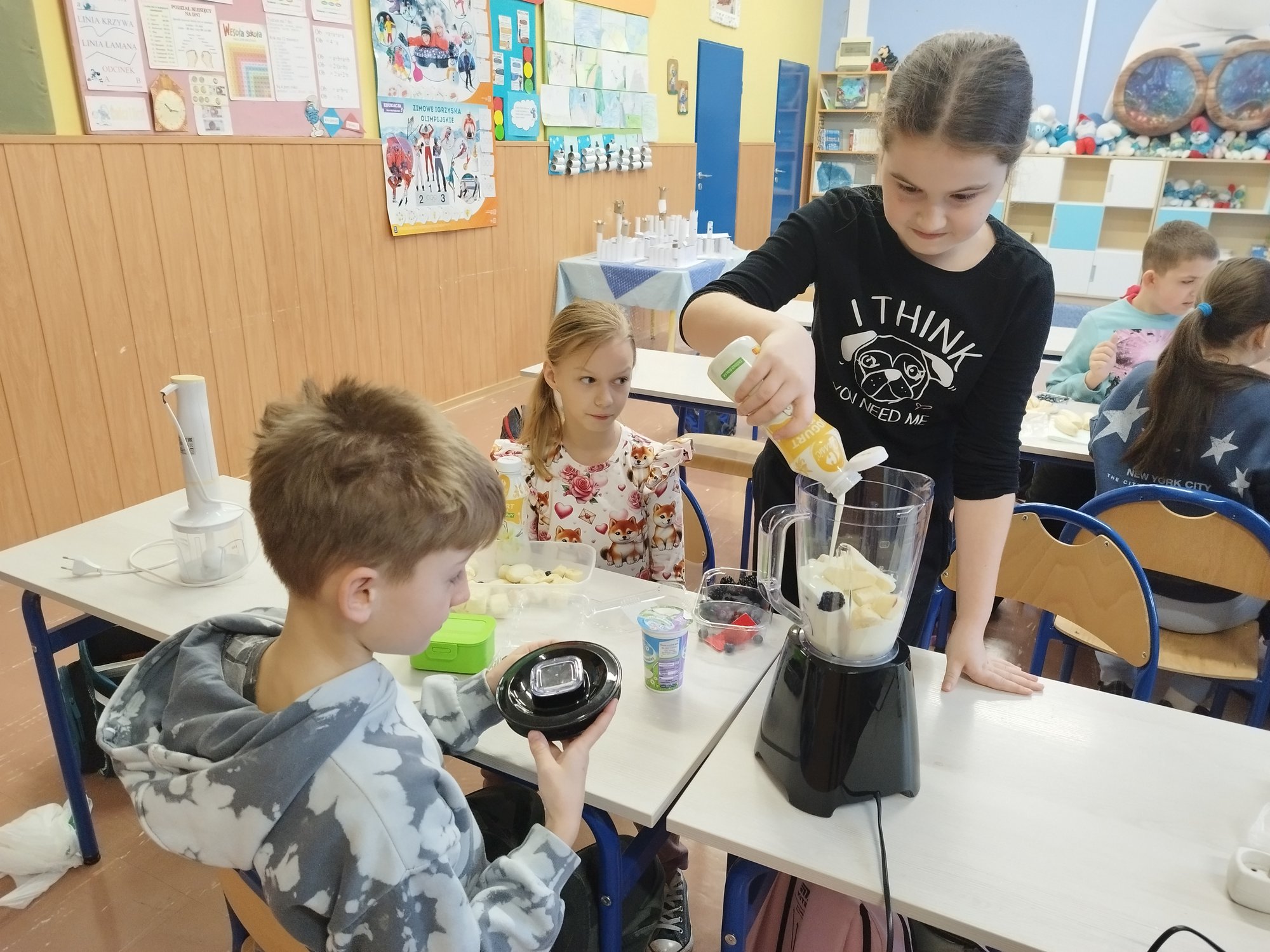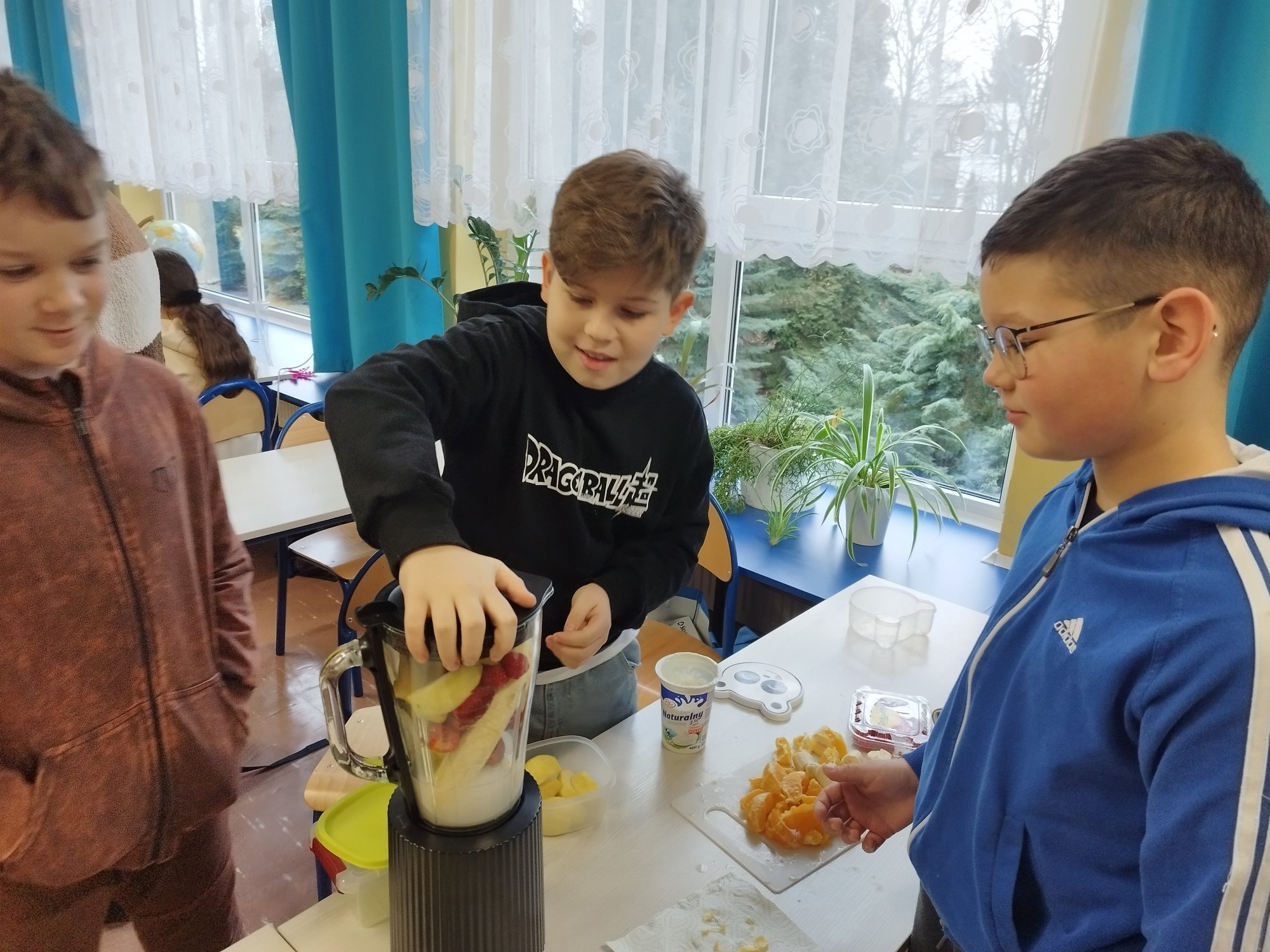 W ubiegłą środę uczniowie naszej szkoły wraz z wychowawczyniami przygotowali pyszne owocowe, soki, smoothie i sałatki, które następnie ze smakiem i uśmiechem chętnie zajadali.