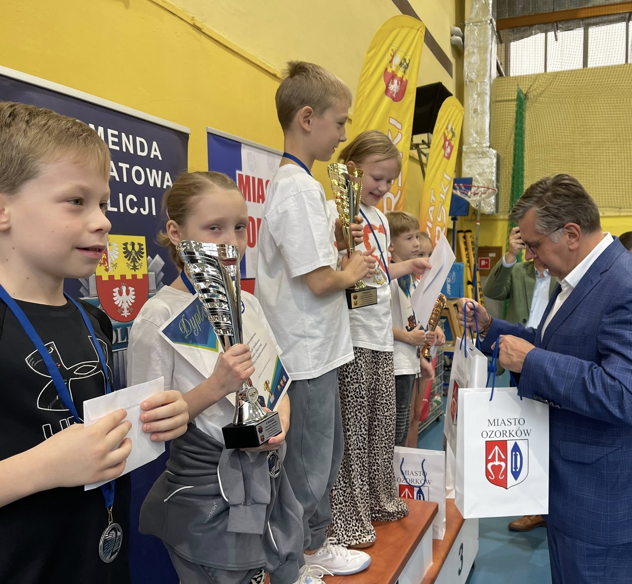 Część sprawnościowa zawodów odbyła się w hali sportowej w Ozorkowie, ale wcześniej uczestnicy rozwiązywali teoretyczny sprawdzian wiedzy o bezpieczeństwie.