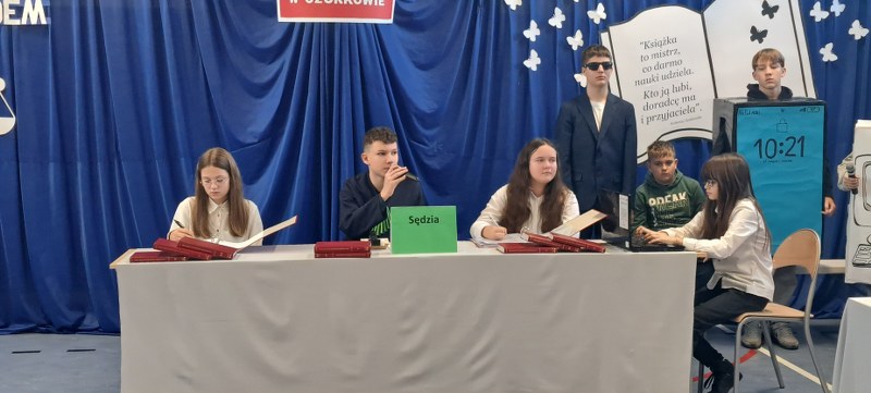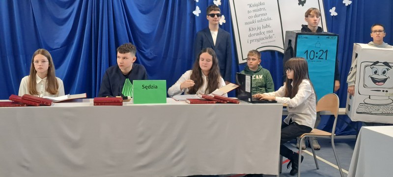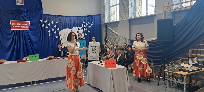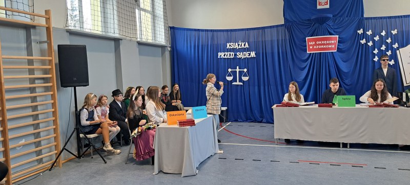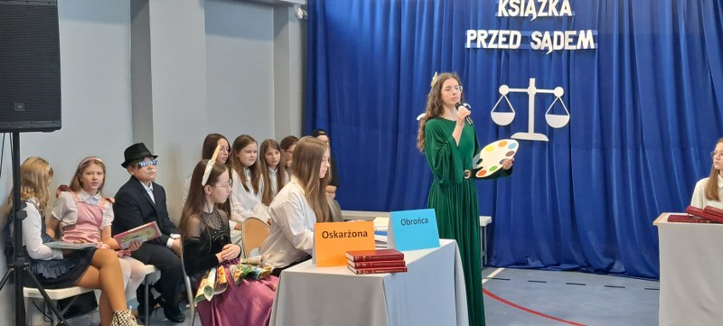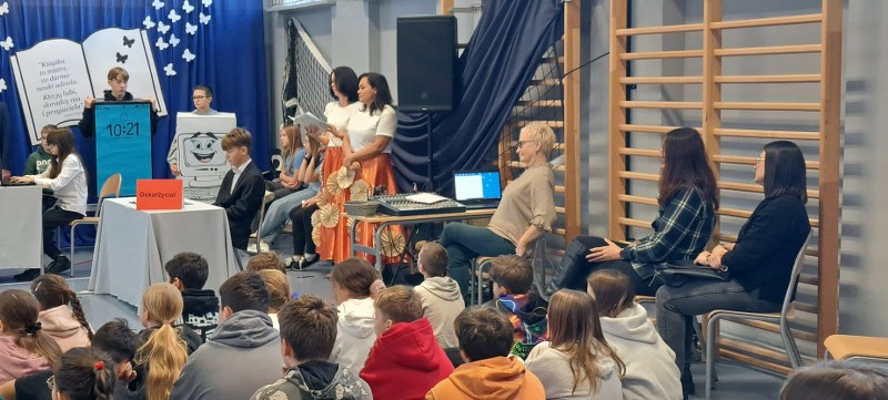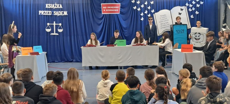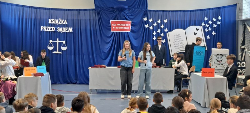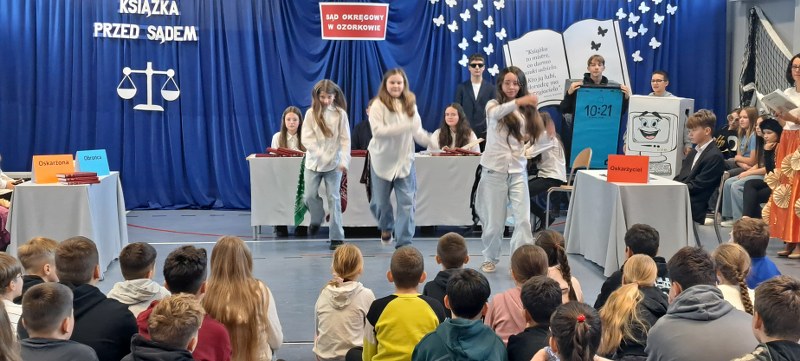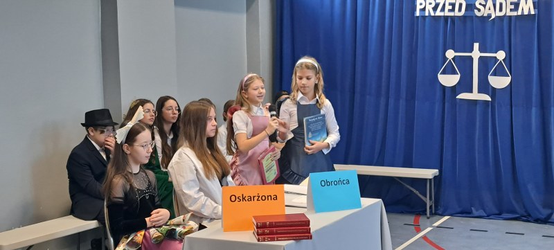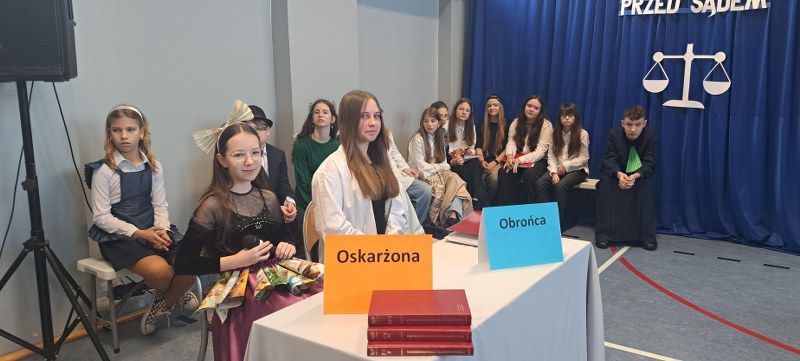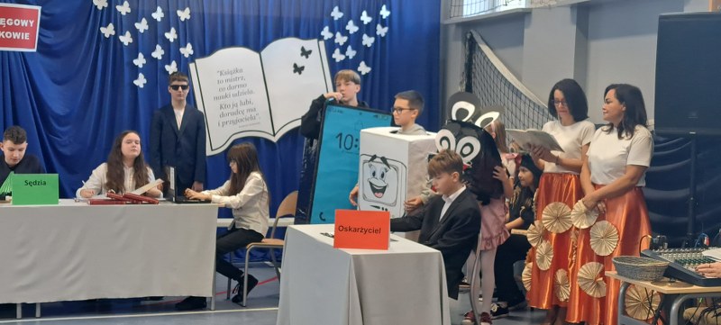 W piątek 28 listopada 2025 r. odbyło się w „Piątkolandii" przedstawienie pt.: „Książka przed sądem", przygotowane przez nauczycieli bibliotekarzy oraz uczniów klas 4-8.