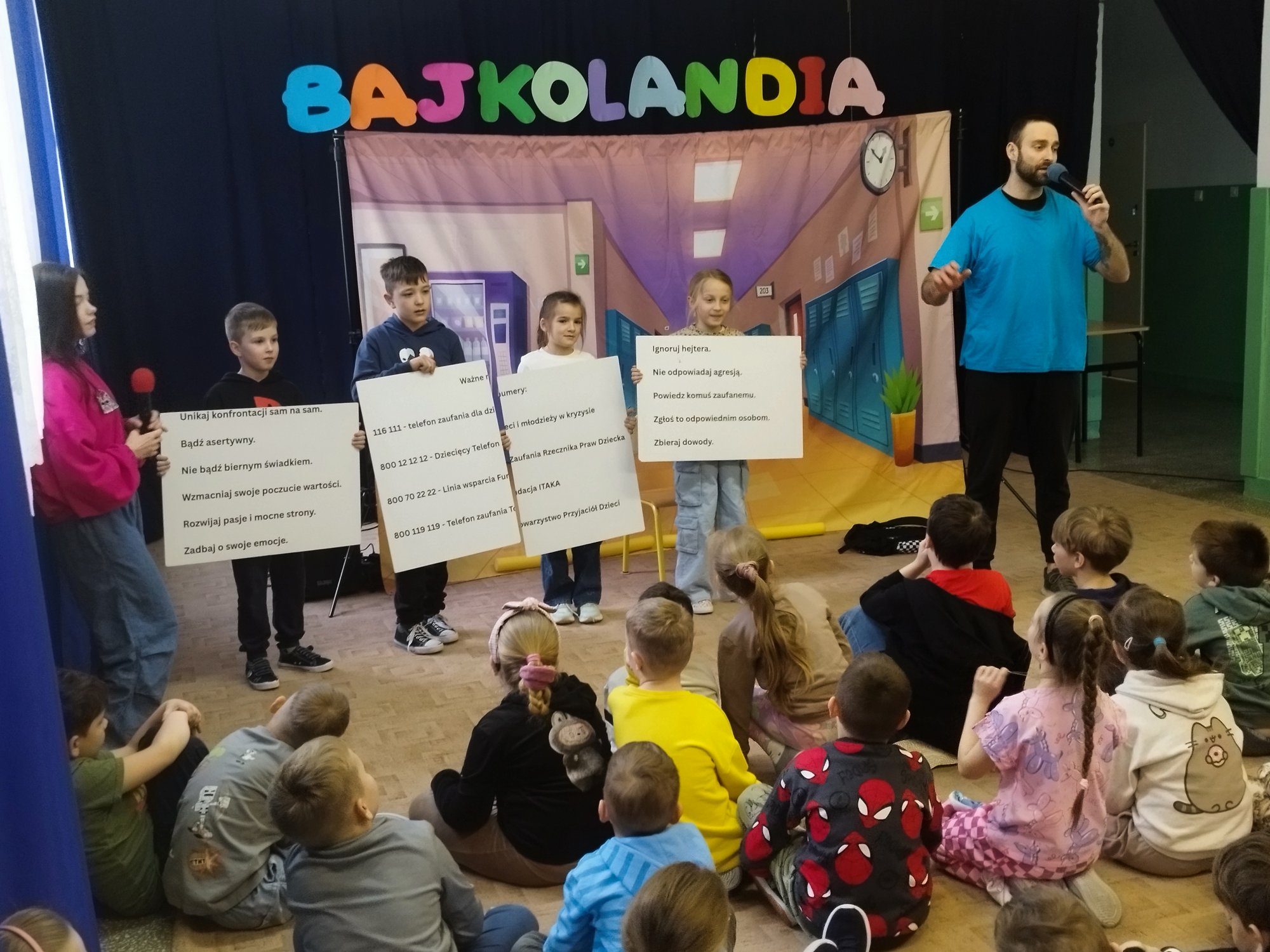 W środę, 18 marca, wszystkie Bajkoludki miały okazję obejrzeć edukacyjny spektakl kabaretowy pt. „Lord Hejter, czyli jak walczyć z czarnym charakterem?”, przygotowany przez Grupę T z Torunia.