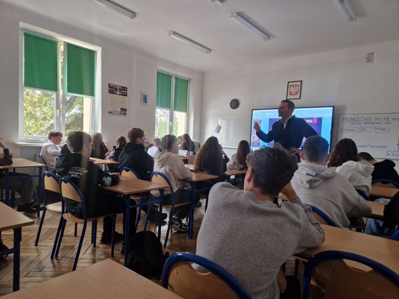 Serdecznie dziękujemy przedstawicielom Izby Administracji Skarbowej z Łodzi za przeprowadzenie ciekawych i angażujących zajęć. Było to spotkanie pełne wartościowej wiedzy, która z pewnością pomoże uczniom lepiej zrozumieć zagrożenia współczesnego świata i podejmować świadome decyzje.