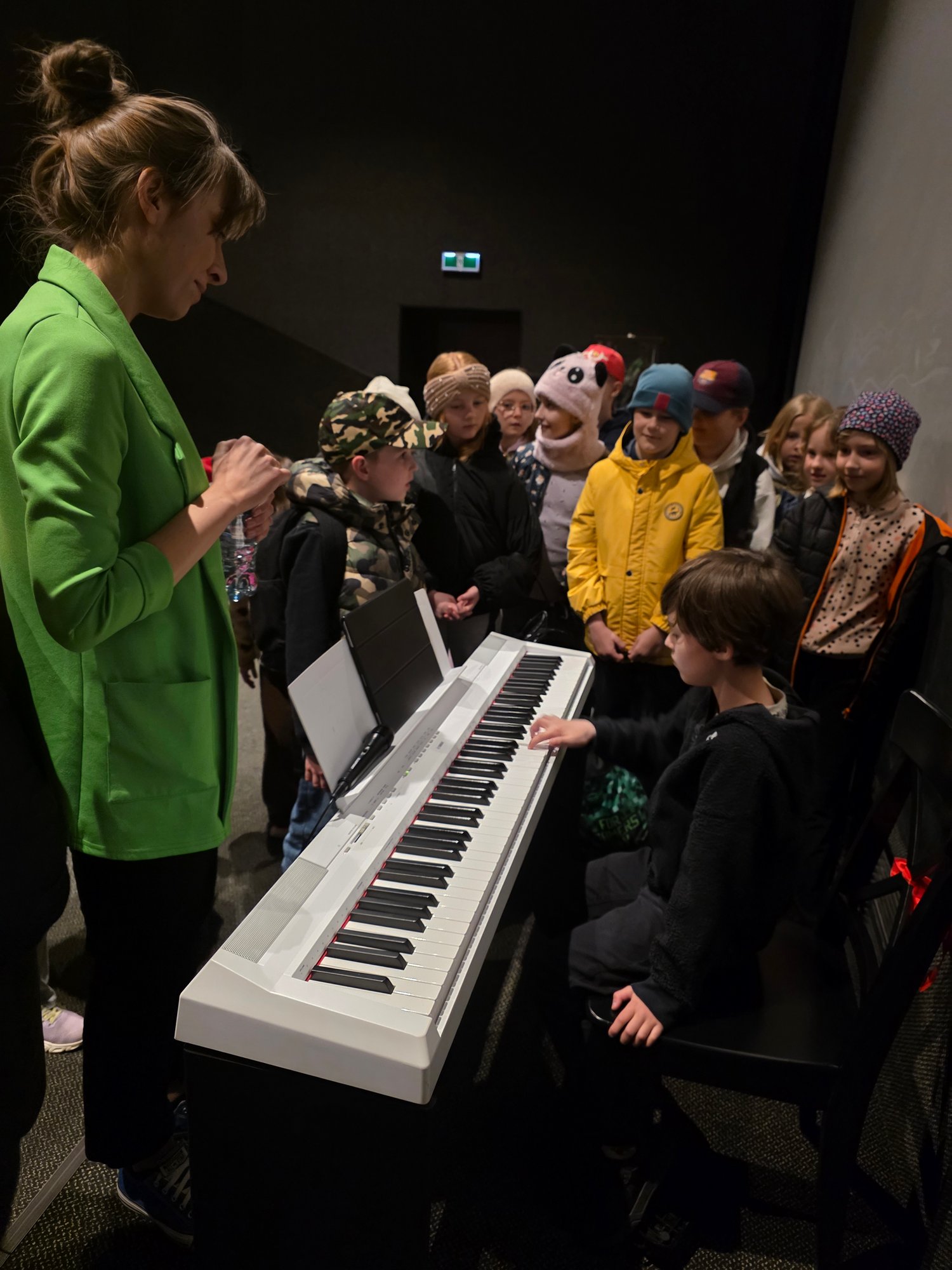 16 kwietnia uczniowie klas drugich pojechali na wycieczkę do kina Górnik w Łęczycy. Tam odbyło się bardzo ciekawe spotkanie z pianistką Panią Martą Plasotą. Dzieci słuchały fragmentów utworów na fortepian sławnych kompozytorów: Bacha, Beethovena, Mozarta, Chopina i innych.