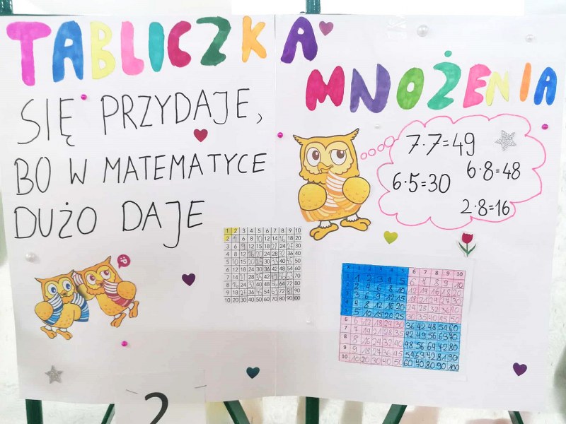 Tego dnia ogłoszono wyniki konkursu na najlepsze hasło promujące tabliczkę mnożenia w formie plakatu. Wyróżnienia otrzymali uczniowie klas: 4a, 4c, 5b, 7b. Zwyciężył plakat przygotowany przez uczniów klasy 4b z hasłem "Tabliczka mnożenia to klucz do liczenia!".