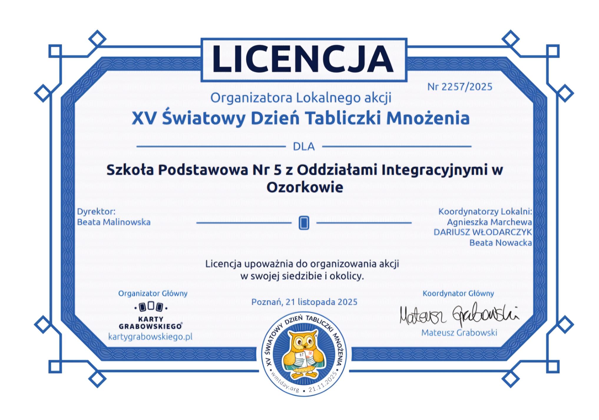 W piątkowy poranek, 21 listopada 2025 roku w naszej szkole uroczyście obchodziliśmy Światowy Dzień Tabliczki Mnożenia – międzynarodową akcję edukacyjną mającą na celu promowanie znajomości podstawowych działań matematycznych oraz zachęcanie uczniów do przyjemnej i atrakcyjnej nauki przez zabawę. Uczniowie przygotowywali się do tego wydarzenia przez cały tydzień – bawiąc się matematyką nie tylko na lekcjach.