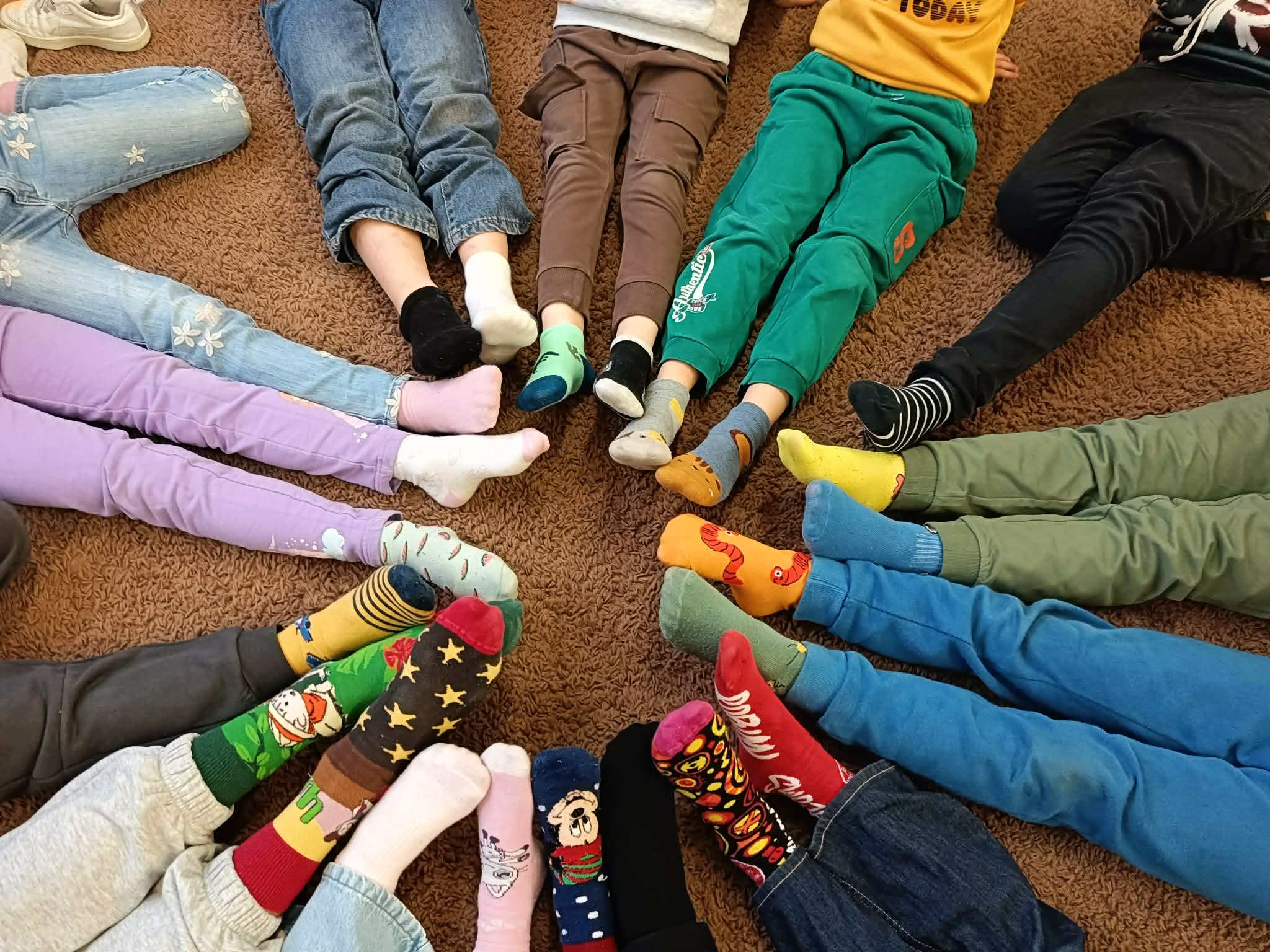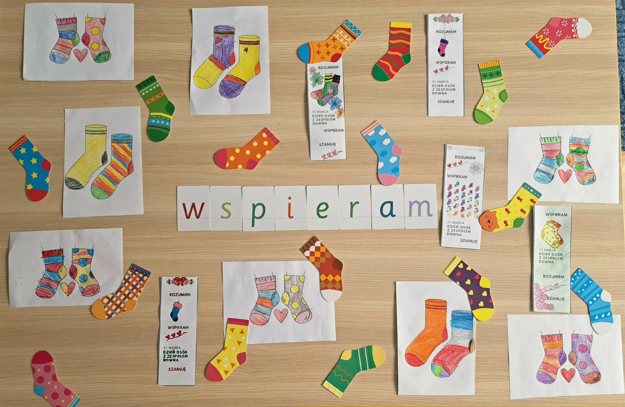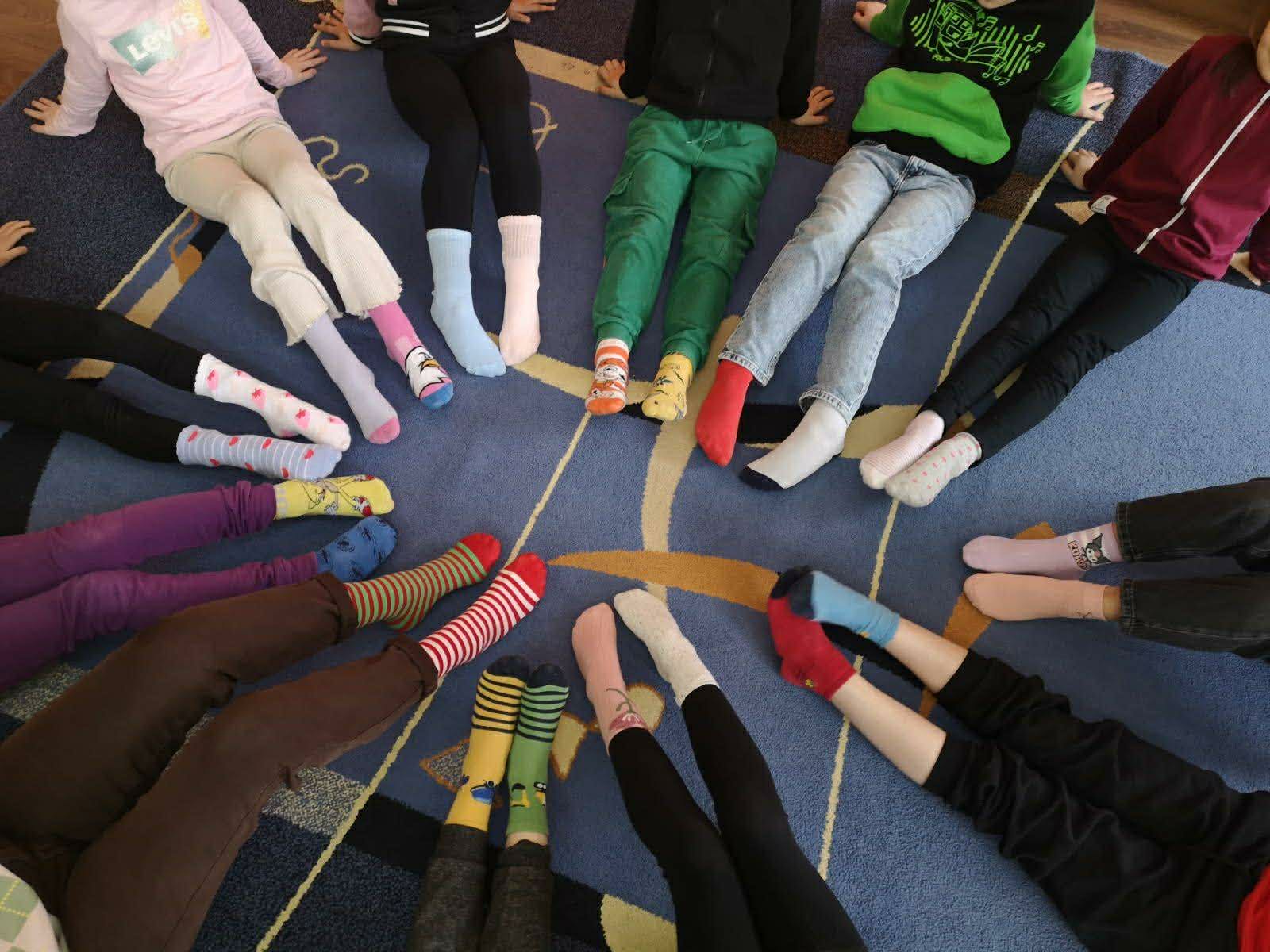 Tego dnia cała społeczność szkolna założyła kolorowe, nie do pary skarpetki jako symbol akceptacji, solidarności oraz wsparcia dla osób z zespołem Downa. Dzieci uczestniczyły w rozmowach i zajęciach edukacyjnych, podczas których dowiedziały się, jak ważne są różnorodność, szacunek i wzajemna pomoc. Nie zabrakło także kreatywnych aktywności – uczniowie wykonywali prace plastyczne przedstawiające kolorowe skarpetki, brali udział w zabawach integracyjnych oraz wspólnie śpiewali radosne piosenki.