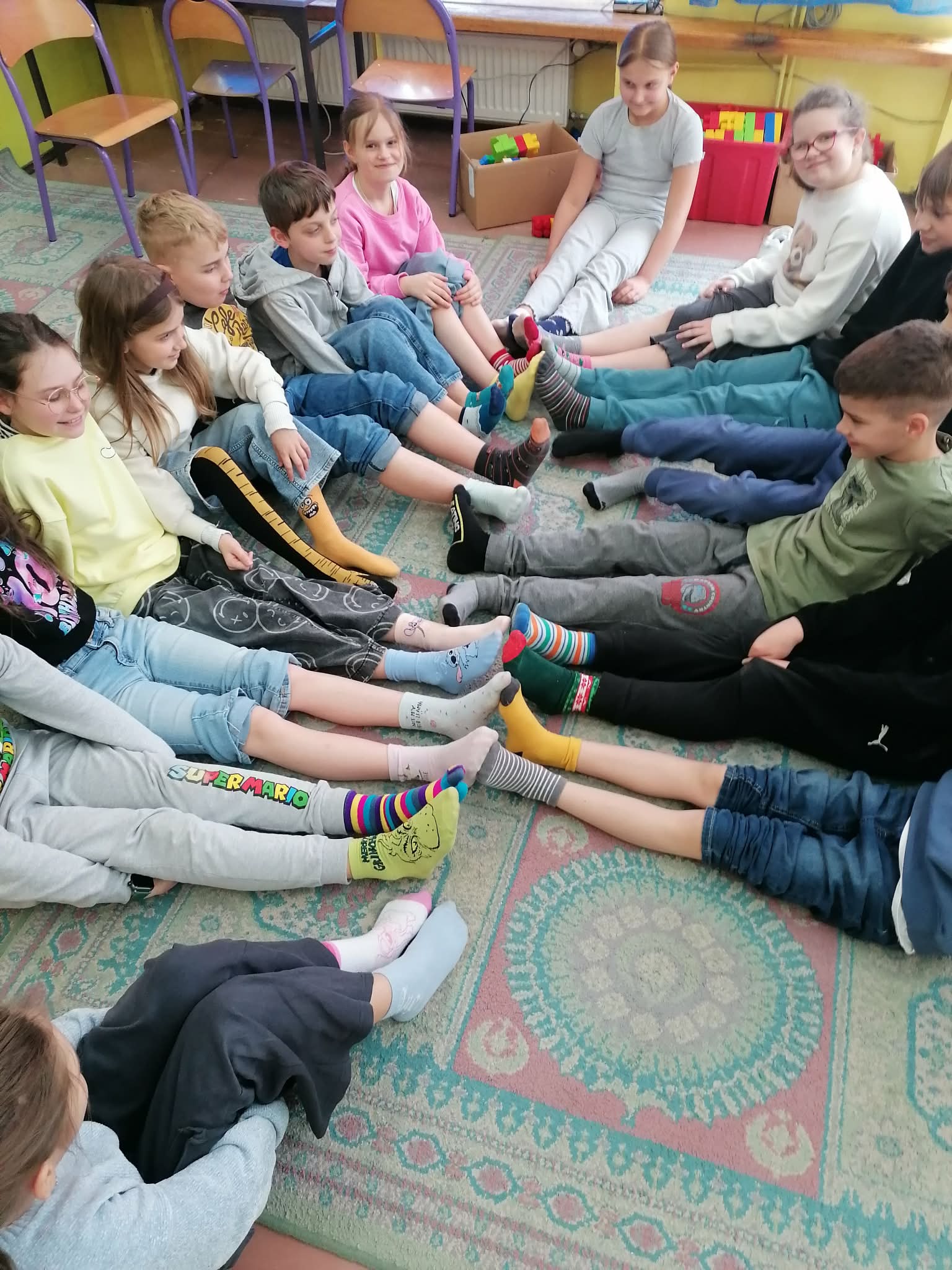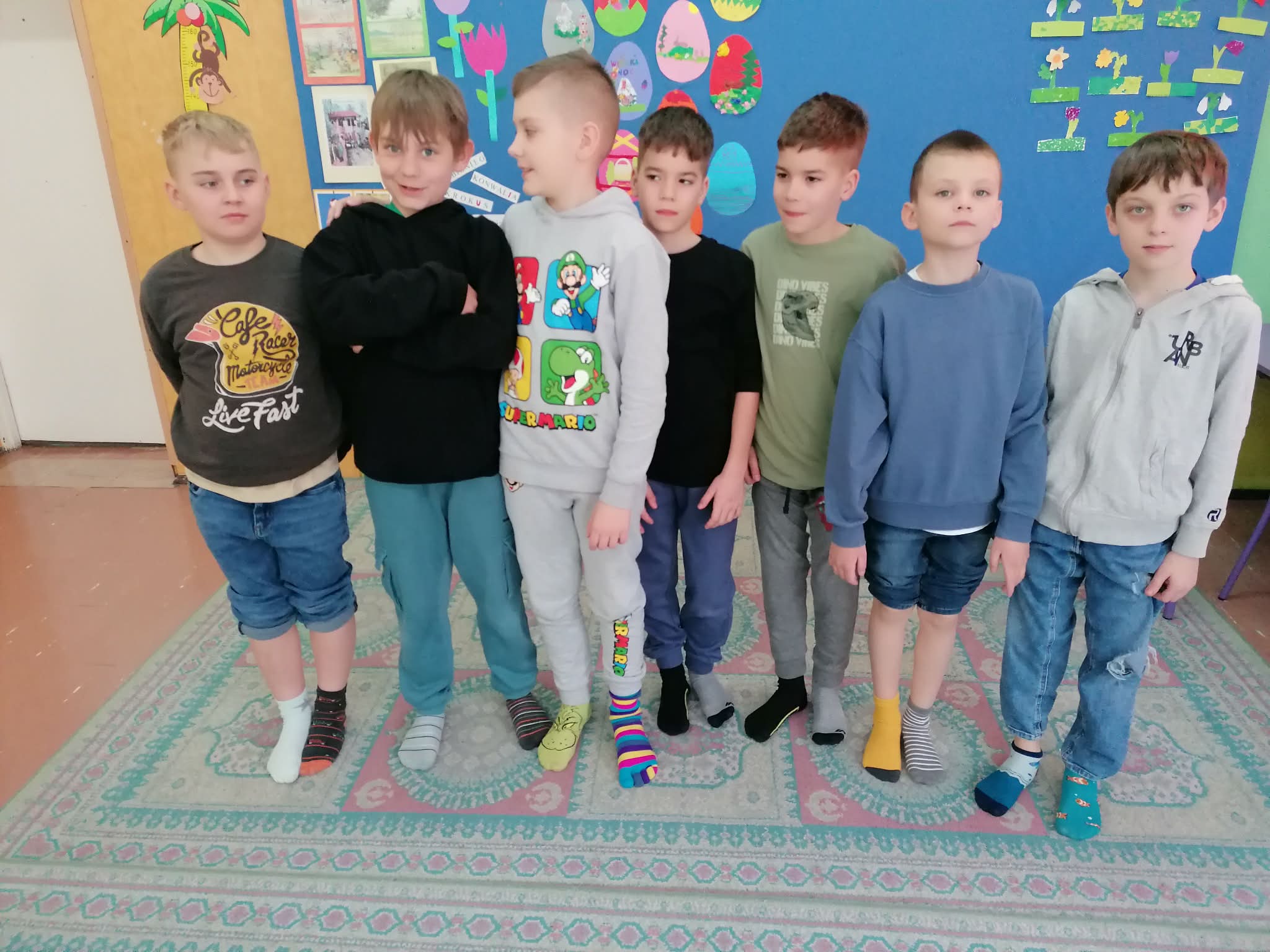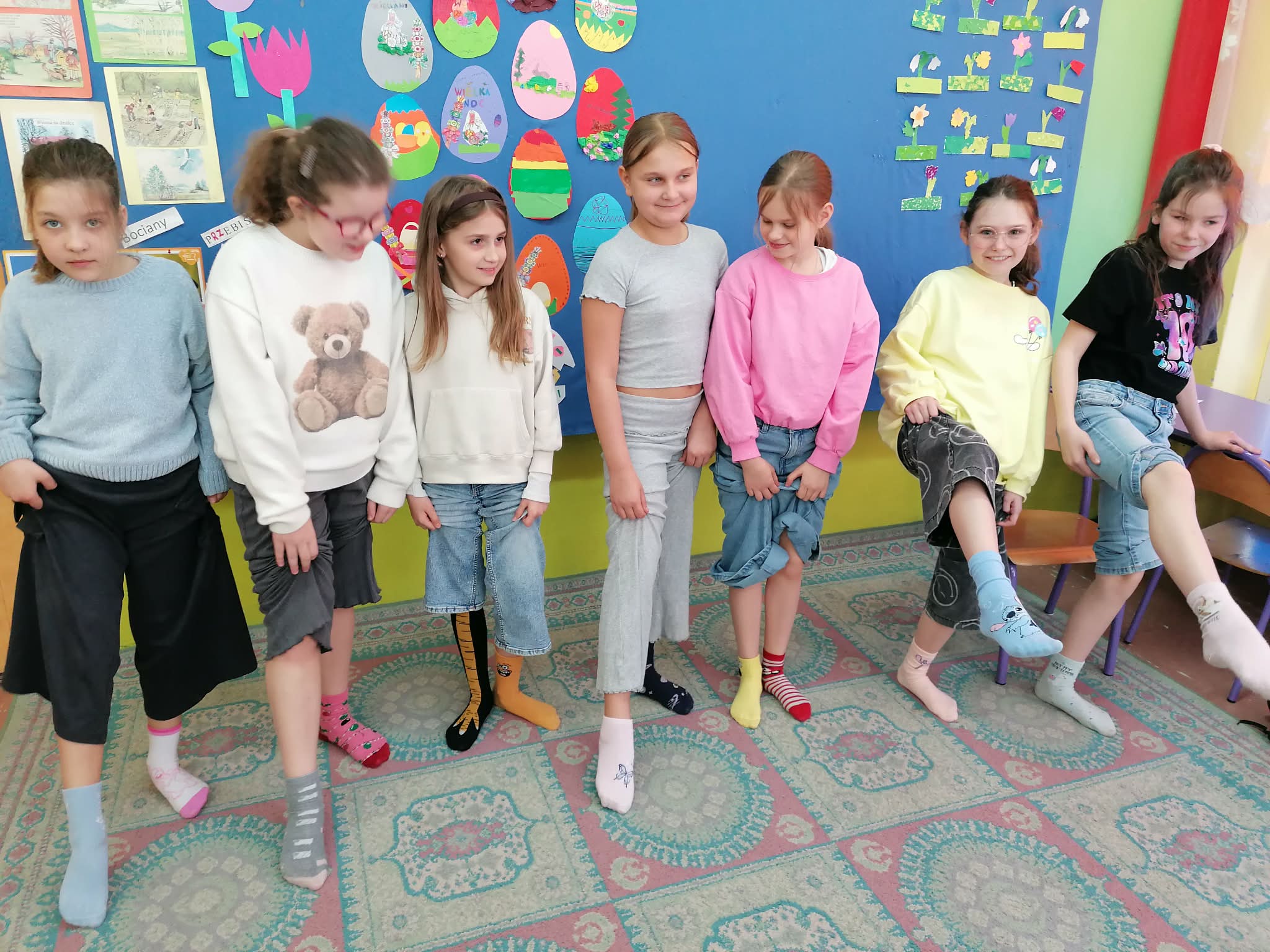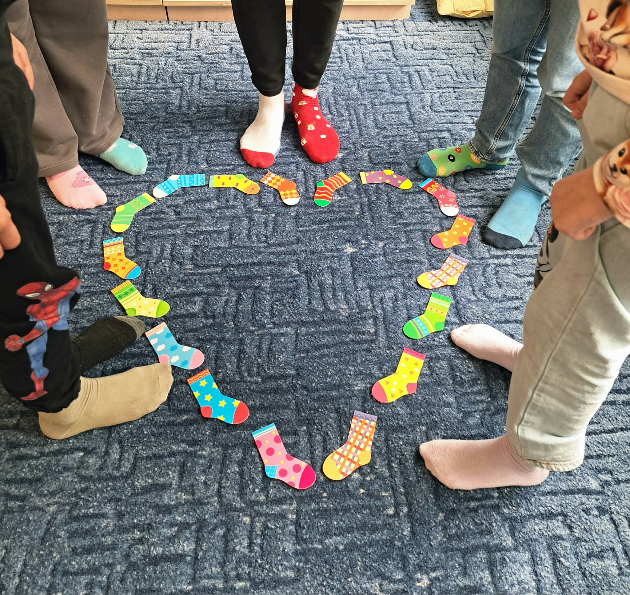 Tego dnia cała społeczność szkolna założyła kolorowe, nie do pary skarpetki jako symbol akceptacji, solidarności oraz wsparcia dla osób z zespołem Downa. Dzieci uczestniczyły w rozmowach i zajęciach edukacyjnych, podczas których dowiedziały się, jak ważne są różnorodność, szacunek i wzajemna pomoc. Nie zabrakło także kreatywnych aktywności – uczniowie wykonywali prace plastyczne przedstawiające kolorowe skarpetki, brali udział w zabawach integracyjnych oraz wspólnie śpiewali radosne piosenki.