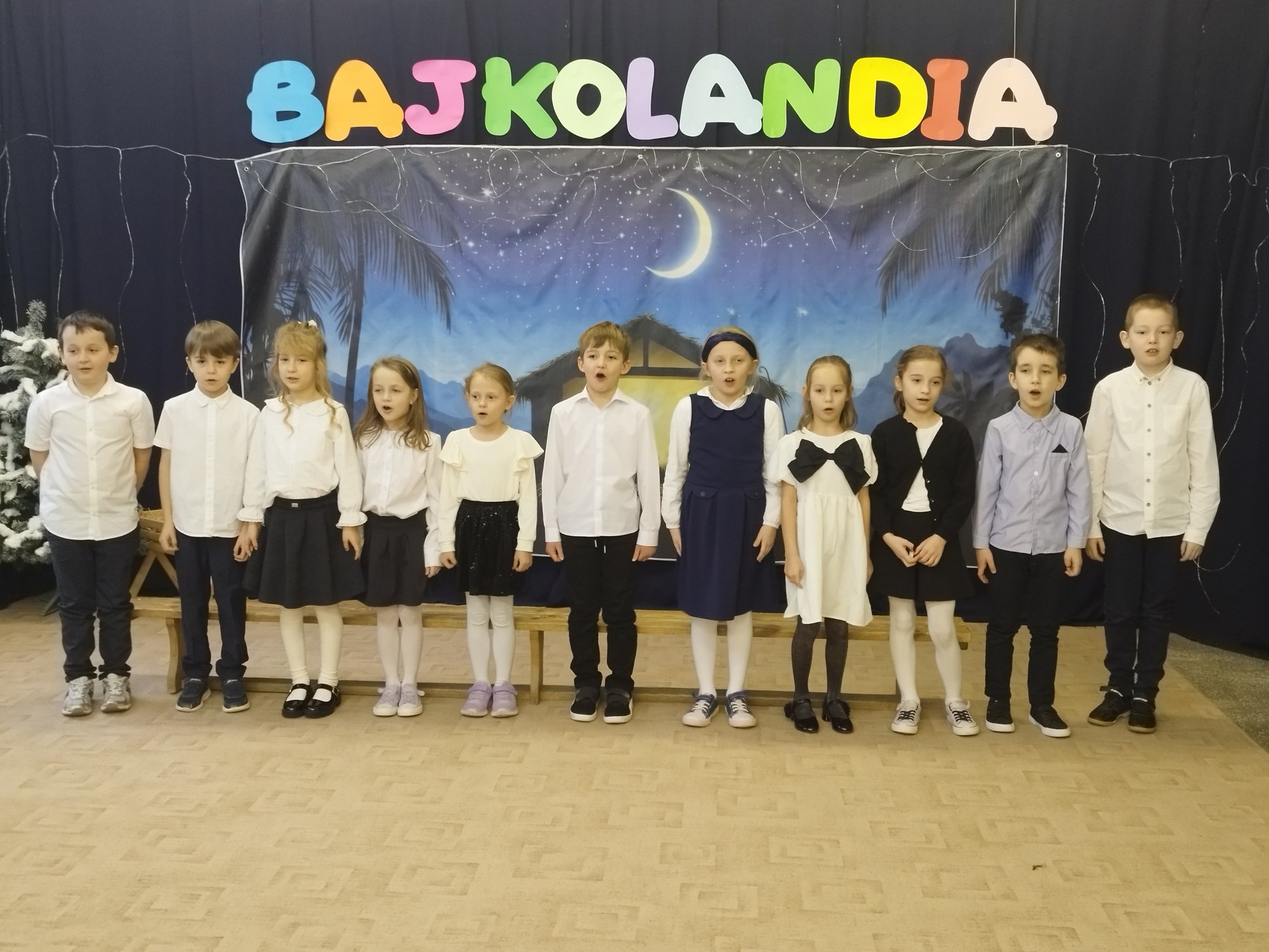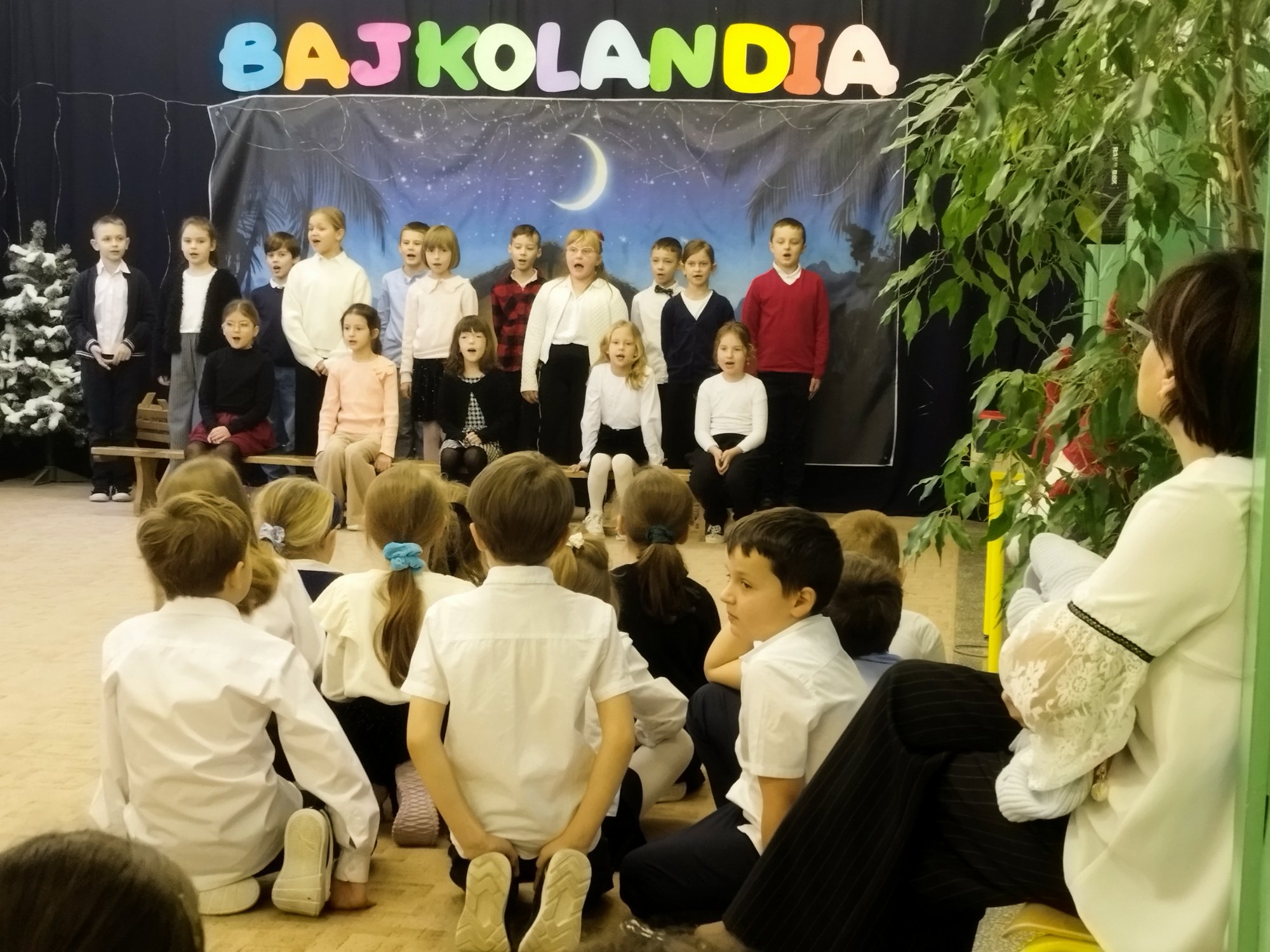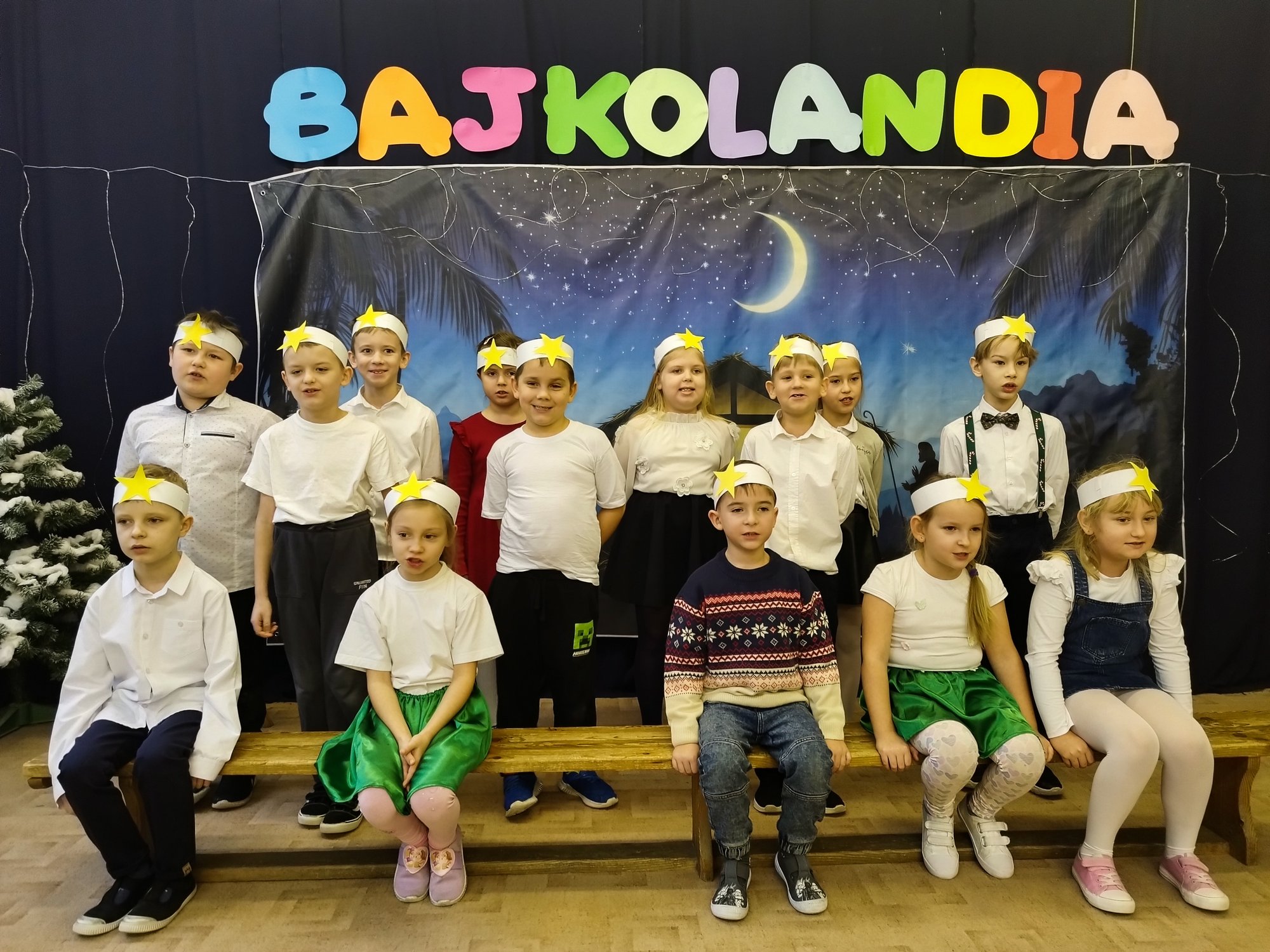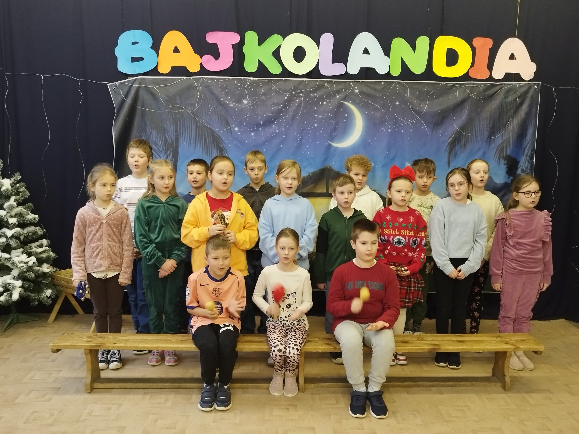 Dzisiaj w Bajkolandii odbyło się wspólne kolędowanie. Każda klasa zaprezentowała wybraną przez siebie kolędę lub pastorałkę. Bajkoludki popisały się wspaniałymi umiejętnościami wokalnymi oraz talentami muzycznymi i lingwistycznymi, ponieważ akompaniowały sobie instrumentami perkusyjnymi, a kolędę "Cicha noc" zaśpiewały również po angielsku.
