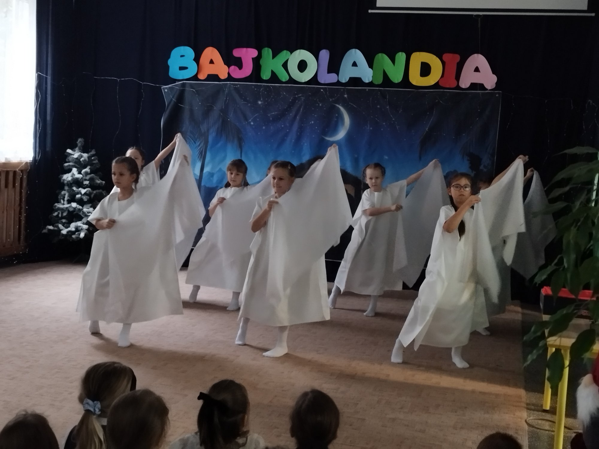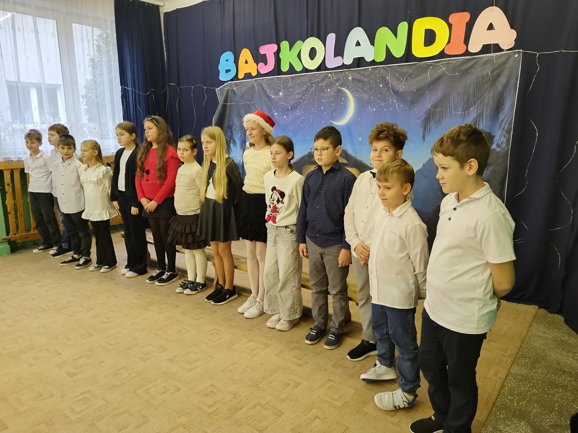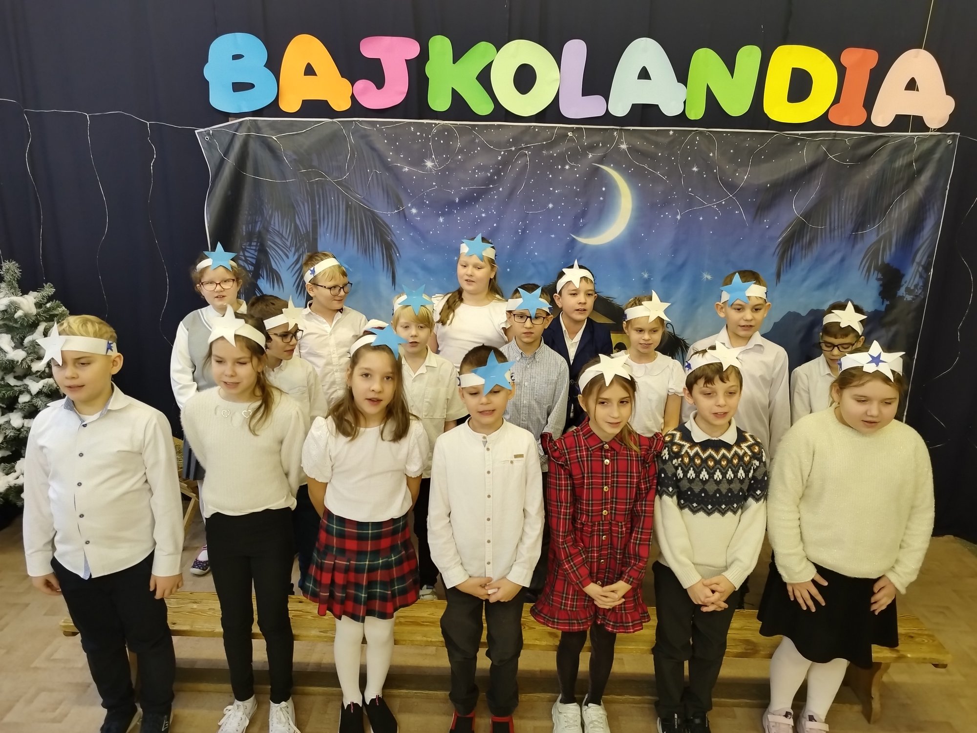 Dzisiaj w Bajkolandii odbyło się wspólne kolędowanie. Każda klasa zaprezentowała wybraną przez siebie kolędę lub pastorałkę. Bajkoludki popisały się wspaniałymi umiejętnościami wokalnymi oraz talentami muzycznymi i lingwistycznymi, ponieważ akompaniowały sobie instrumentami perkusyjnymi, a kolędę "Cicha noc" zaśpiewały również po angielsku.