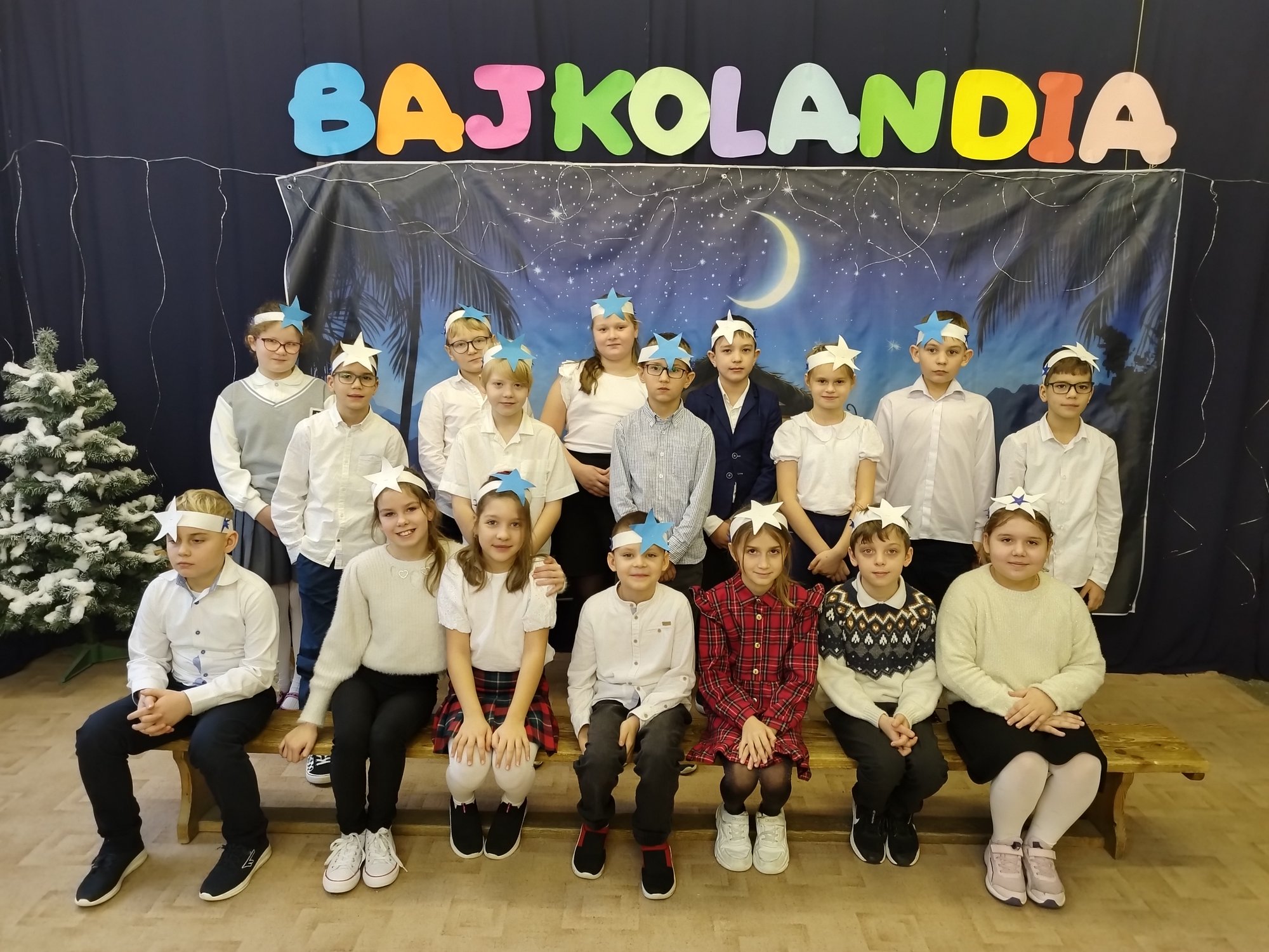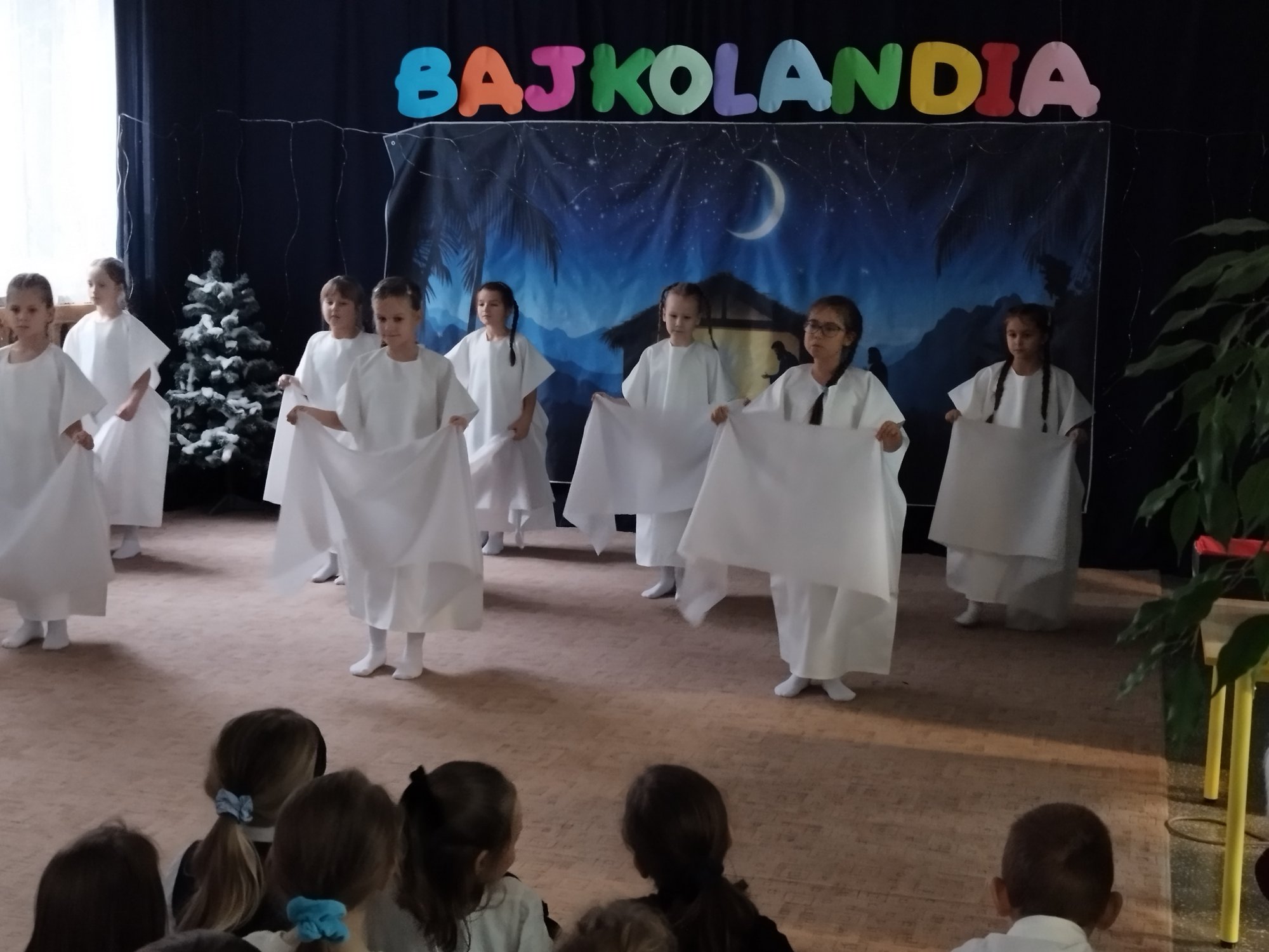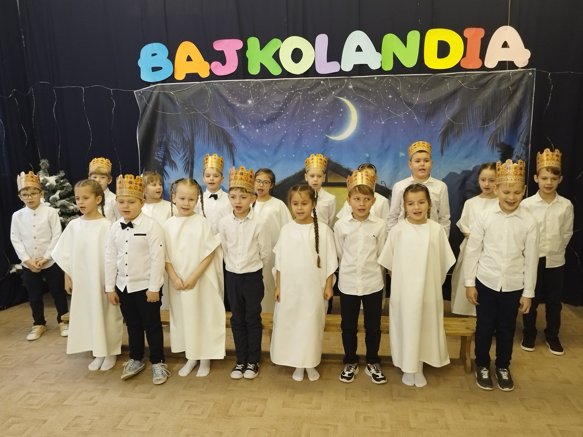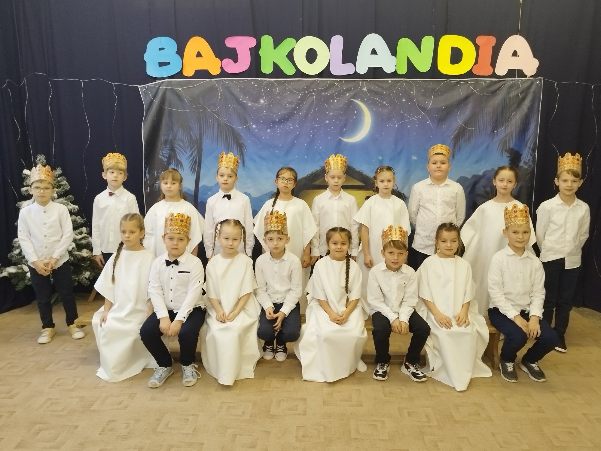 Dzisiaj w Bajkolandii odbyło się wspólne kolędowanie. Każda klasa zaprezentowała wybraną przez siebie kolędę lub pastorałkę. Bajkoludki popisały się wspaniałymi umiejętnościami wokalnymi oraz talentami muzycznymi i lingwistycznymi, ponieważ akompaniowały sobie instrumentami perkusyjnymi, a kolędę "Cicha noc" zaśpiewały również po angielsku.