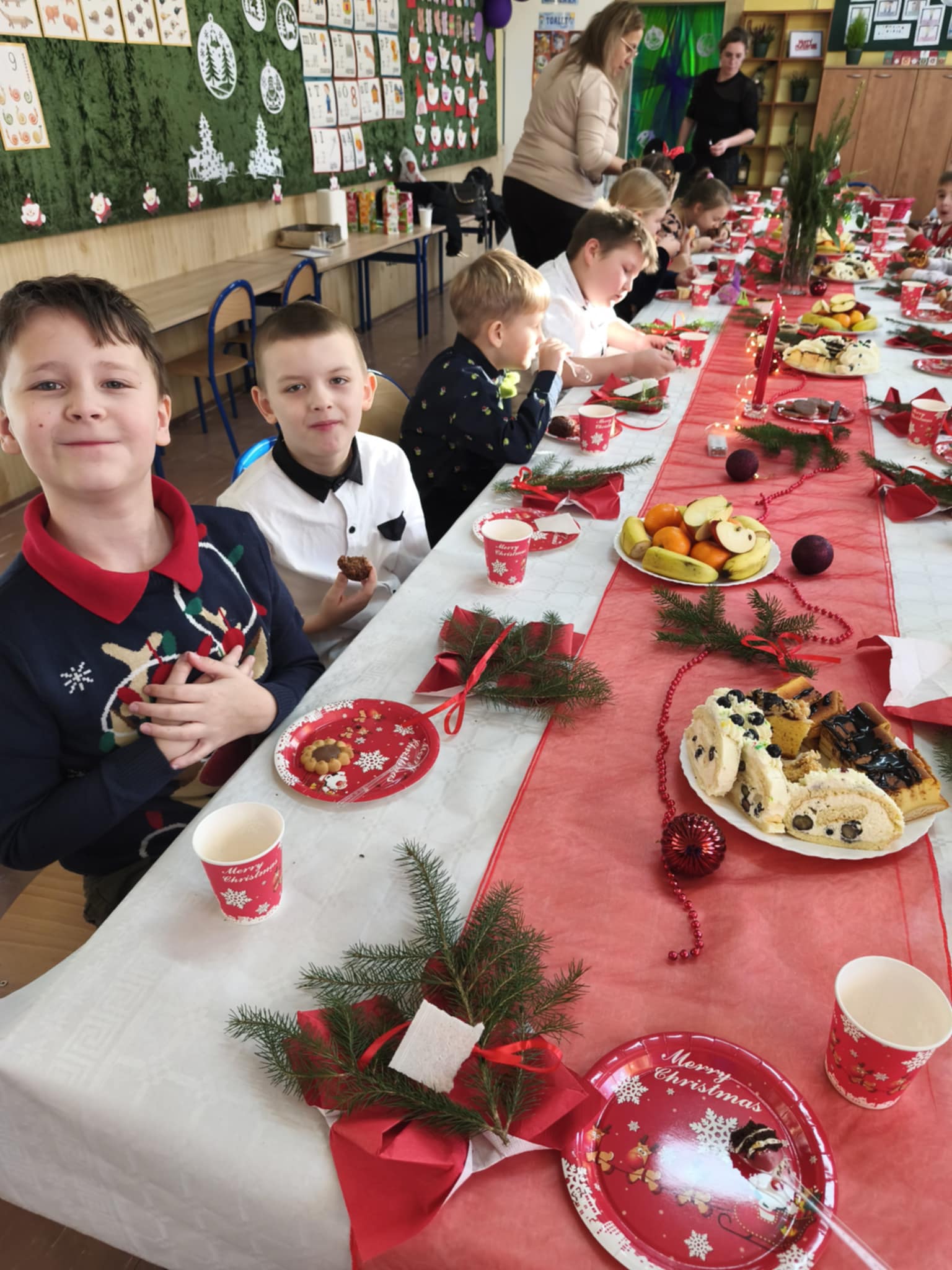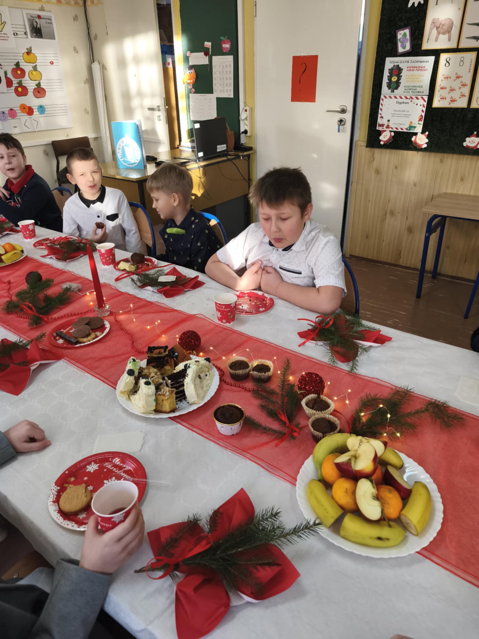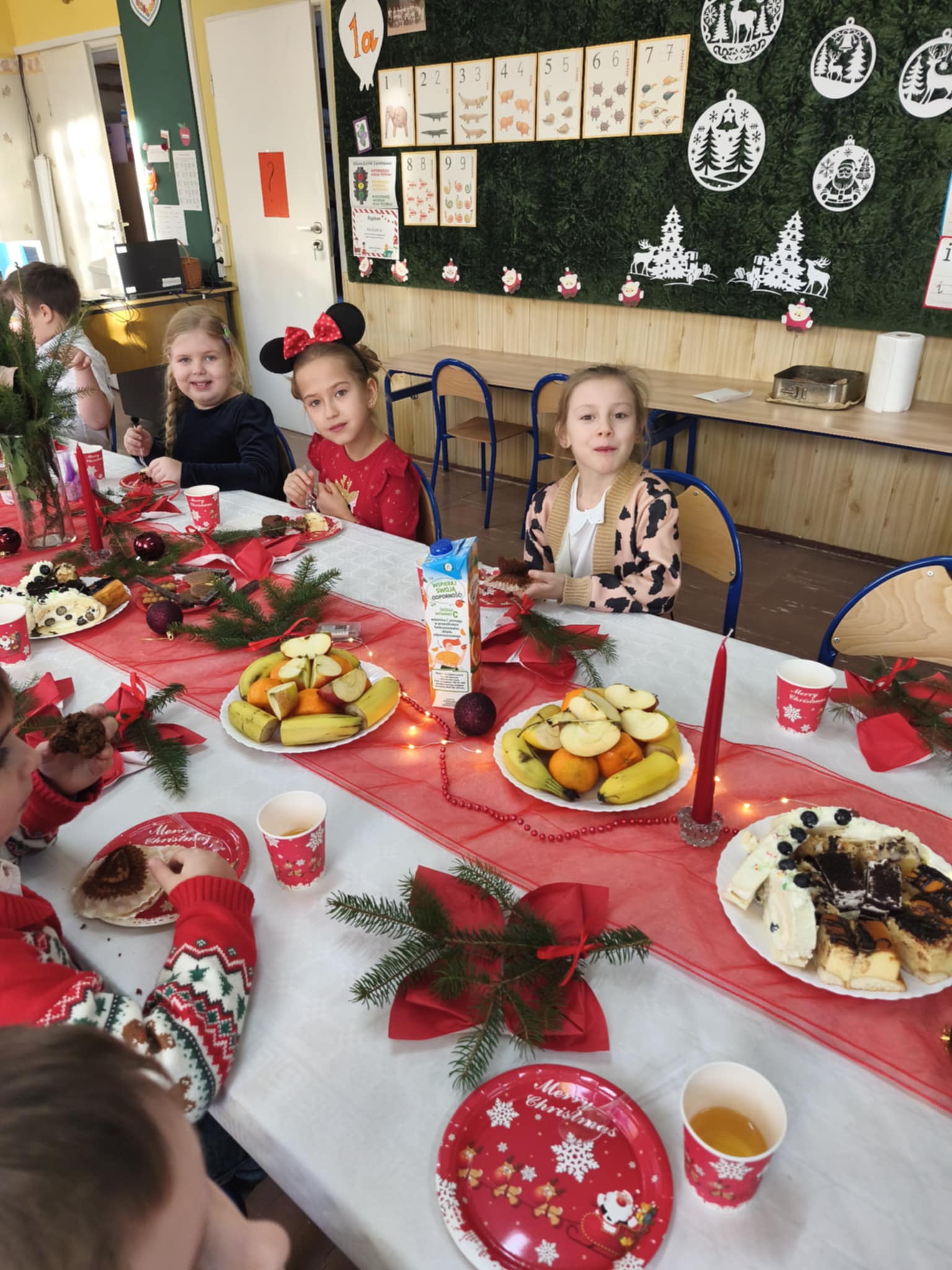 19 grudnia w klasie Czarnych Jagódek odbyła się pierwsza klasowa Wigilia. Dzieci dzieliły się opłatkiem, składały sobie życzenia. Wspólnie świętowały przy wigilijnym stole. Nie zabrakło świątecznych prezentów i śpiewania kolęd.