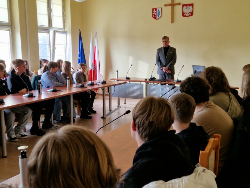 Spotkanie odbyło się w sali posiedzeń Rady Miasta. Burmistrz Jacek Socha w przystępny i interesujący sposób opowiedział uczniom o strukturze samorządu, zadaniach poszczególnych jednostek oraz o codziennej pracy urzędu. Uczniowie mogli dowiedzieć się, jak podejmowane są decyzje dotyczące miasta, powiatu i województwa oraz jakie kompetencje mają władze samorządowe na poszczególnych szczeblach.