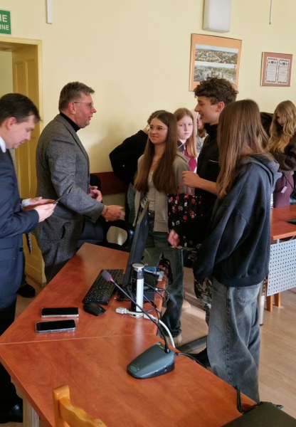Wizyta w Urzędzie Miasta była cenną lekcją praktyczną, która z pewnością na długo pozostanie w pamięci uczniów i zachęci ich do świadomego uczestnictwa w życiu społecznym. Jeszcze raz dziękujemy Panu Burmistrzowi za poświęcony czas i przekazaną wiedzę.