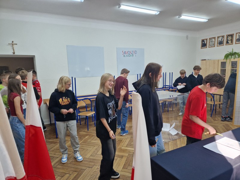 Głosowanie odbyło się w sposób tajny – uczniowie wrzucali swoje karty do specjalnie przygotowanej urny, udostępnionej przez Urząd Miasta, a nad prawidłowym przebiegiem wyborów czuwała komisja złożona z Pani Dyrektor, opiekunki Samorządu Uczniowskiego, członka Samorządu Uczniowskiego oraz przedstawiciela Rady Rodziców. Po przeliczeniu głosów ogłoszono wyniki – spośród czterech kandydatów wybrano trzech przedstawicieli. Głosami uczniów radnymi zostali: Julia Kotynia z klasy 7A, Oliwier Stelmaszewski z klasy 7C oraz Lena Kurpińska z klasy 6B.