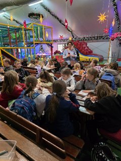 17 grudnia uczniowie klasy 2a i 2b odwiedzili krainę Św. Mikołaja w Kołacinku. Było wiele atrakcji: bajkowe domki, młyn do mielenia złych postępków, warsztaty plastyczne, film o epoce lodowcowej, zabawy ruchowe i zręcznościowe. Oczywiście nie zabrakło prezentów, które wręczał dzieciom Św. Mikołaj. Piękne dekoracje świetlne i muzyka świąteczna zapewniła magiczną atmosferę Świąt Bożego Narodzenia.