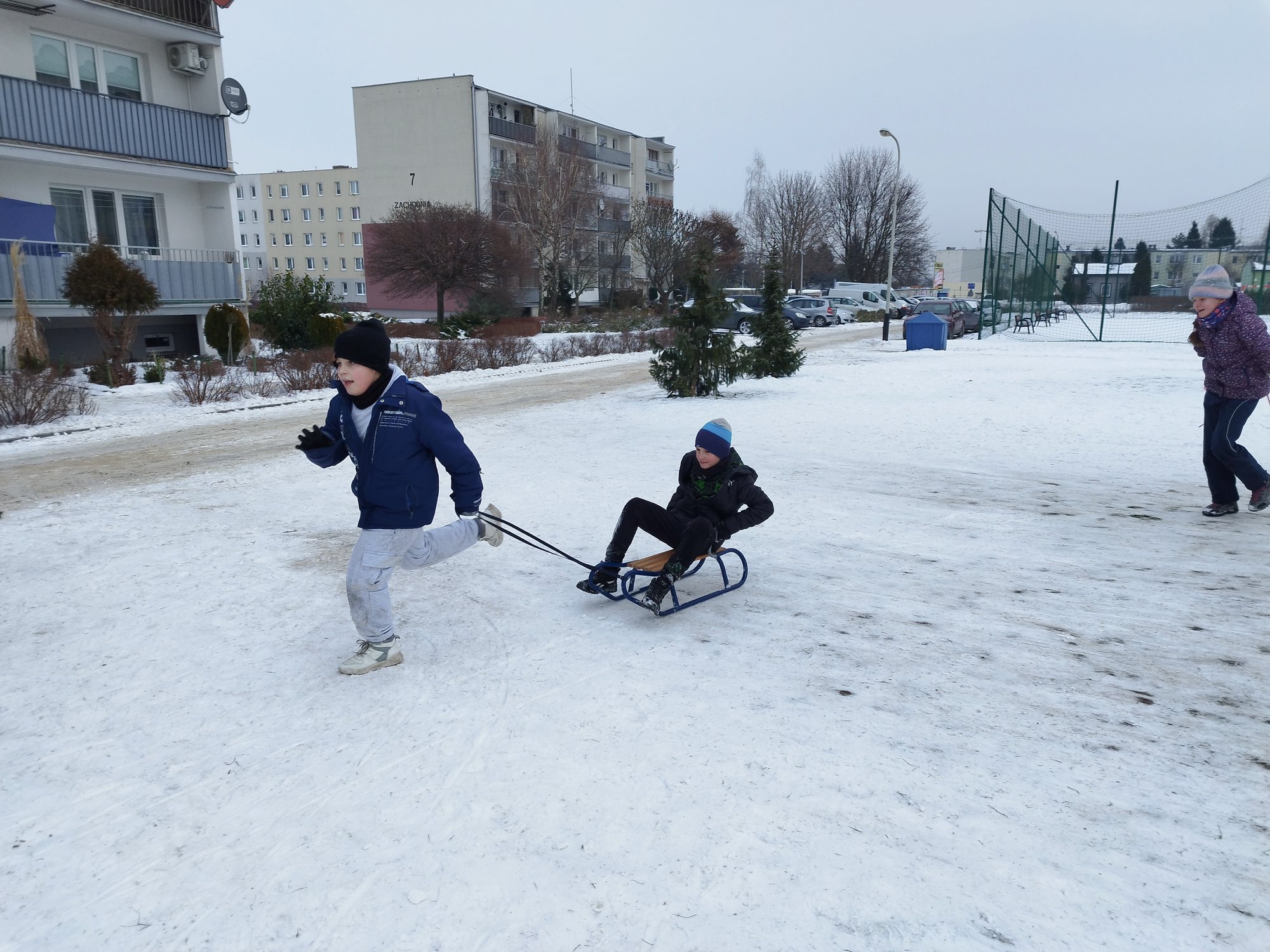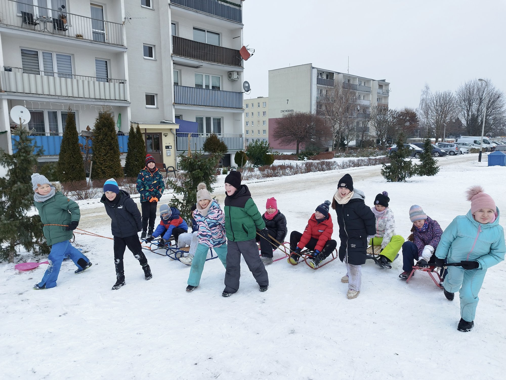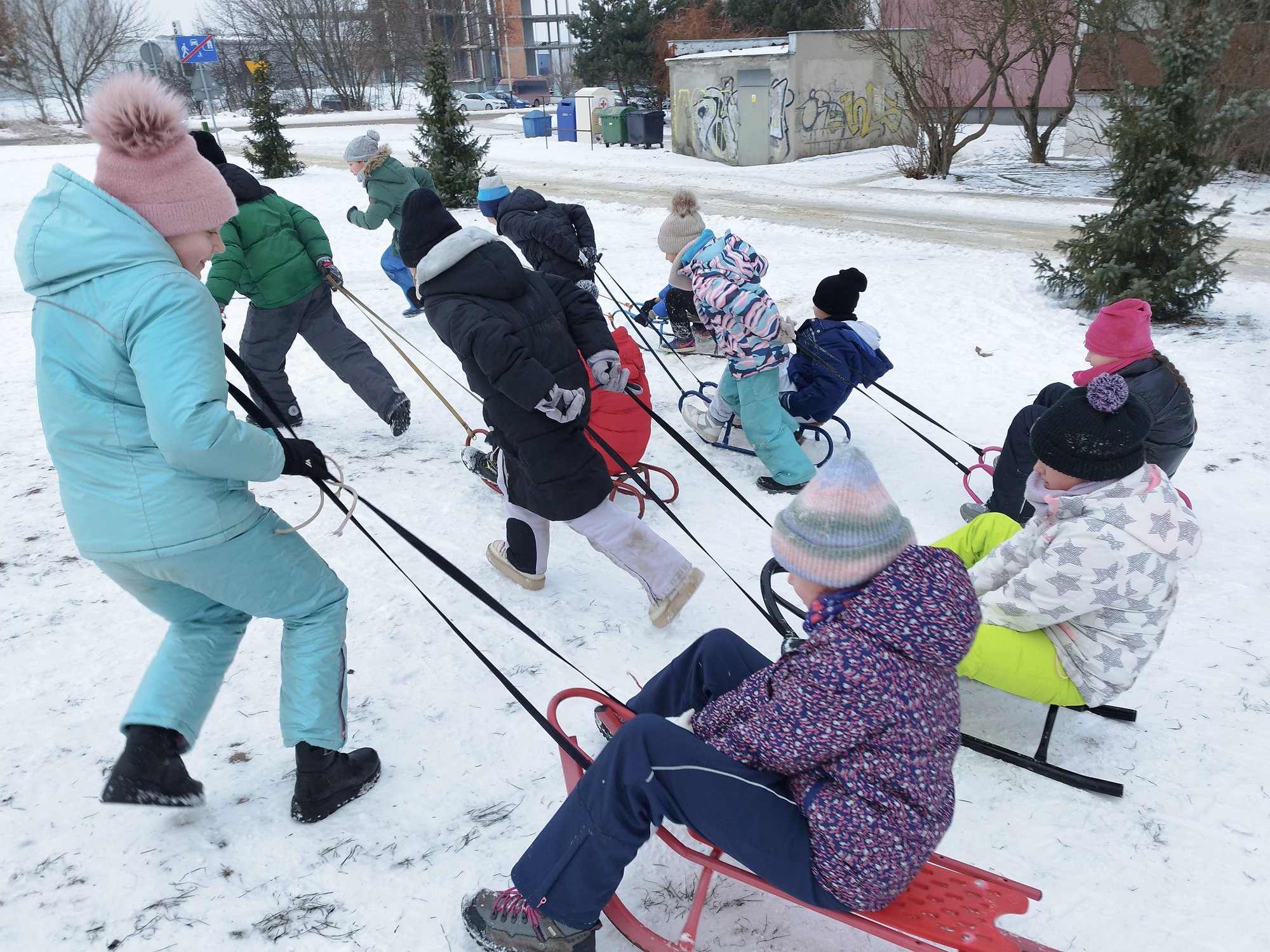 Korzystając z zimowej aury Smerfy z klasy 3B ponownie udały się na saneczki. Tym razem, oprócz tradycyjnych zjazdów z górki, urządzili sobie wyścigi zaprzęgów. Zawody udały się wspaniale. Tylko jeden "renifer" zgubił po drodze swojego "Smerfnego Mikołaja" ;)