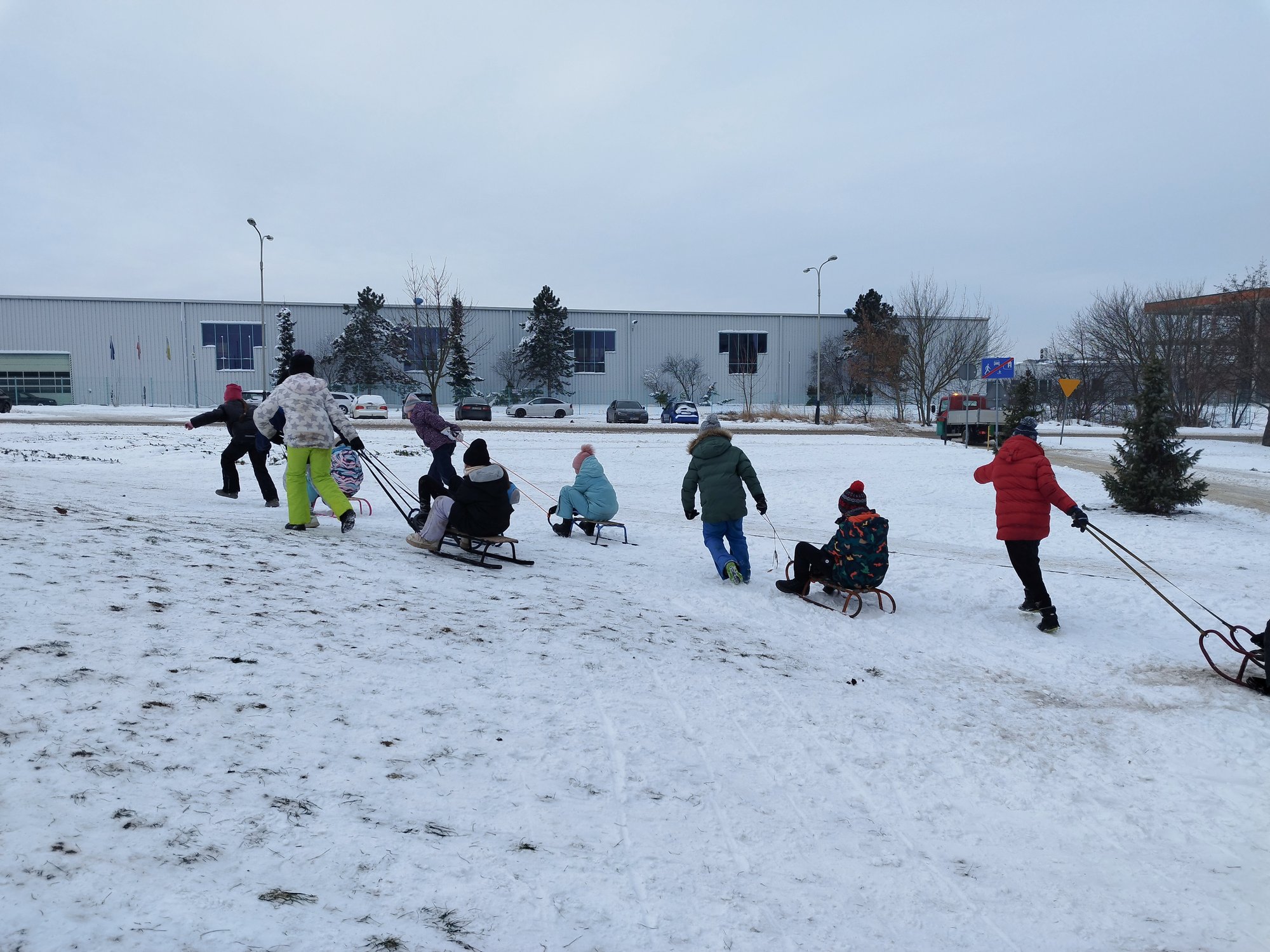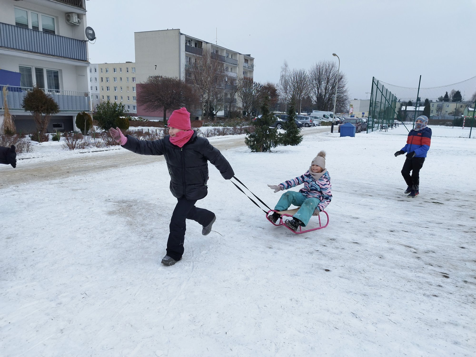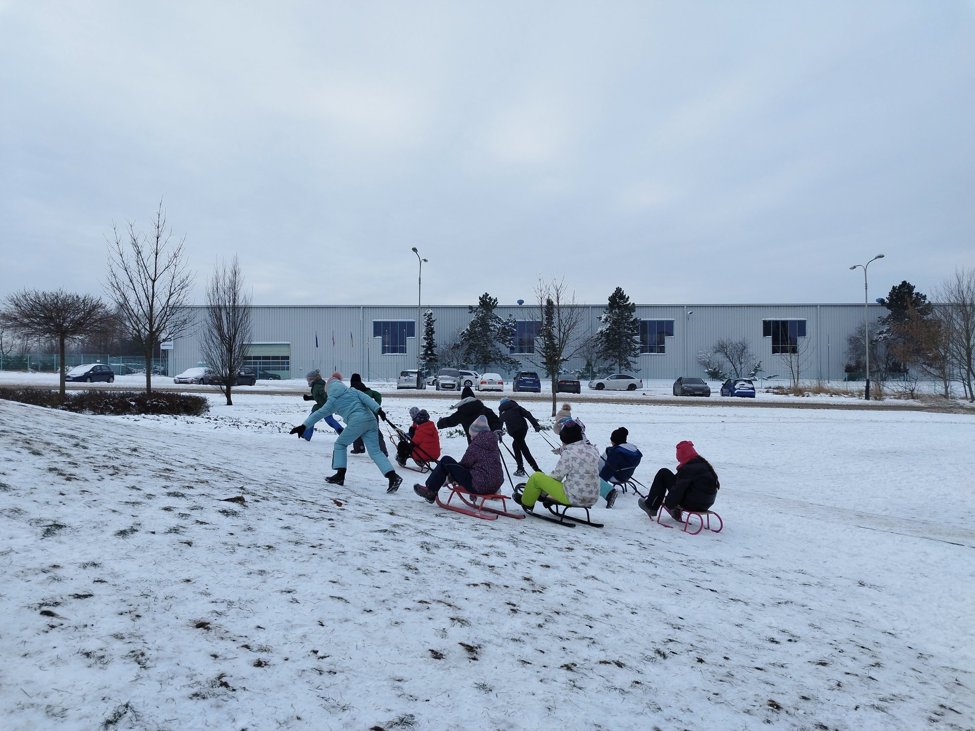 Korzystając z zimowej aury Smerfy z klasy 3B ponownie udały się na saneczki. Tym razem, oprócz tradycyjnych zjazdów z górki, urządzili sobie wyścigi zaprzęgów. Zawody udały się wspaniale. Tylko jeden "renifer" zgubił po drodze swojego "Smerfnego Mikołaja" ;)