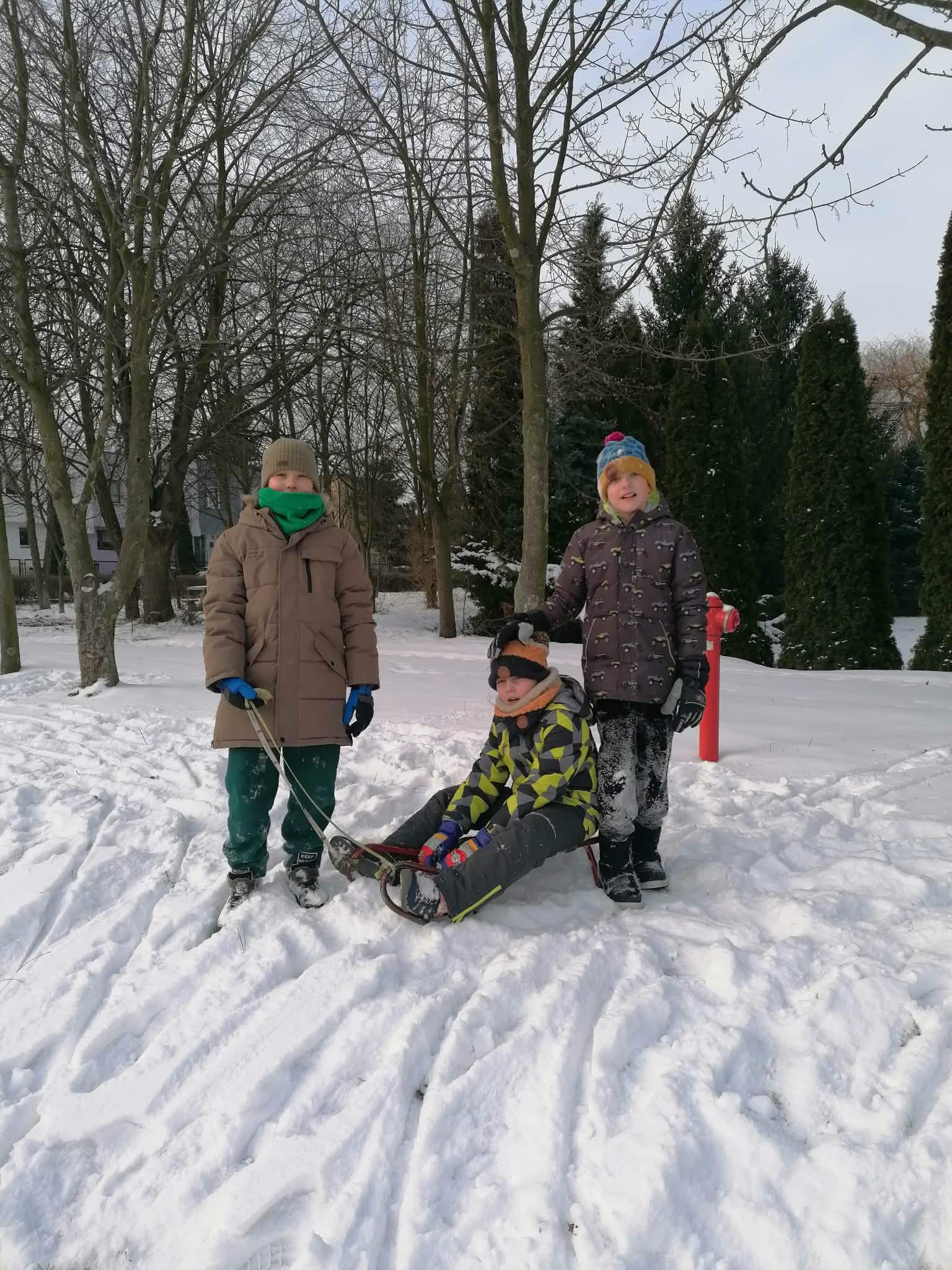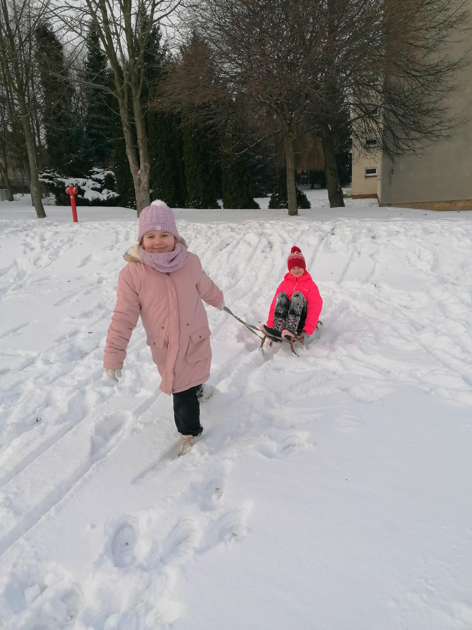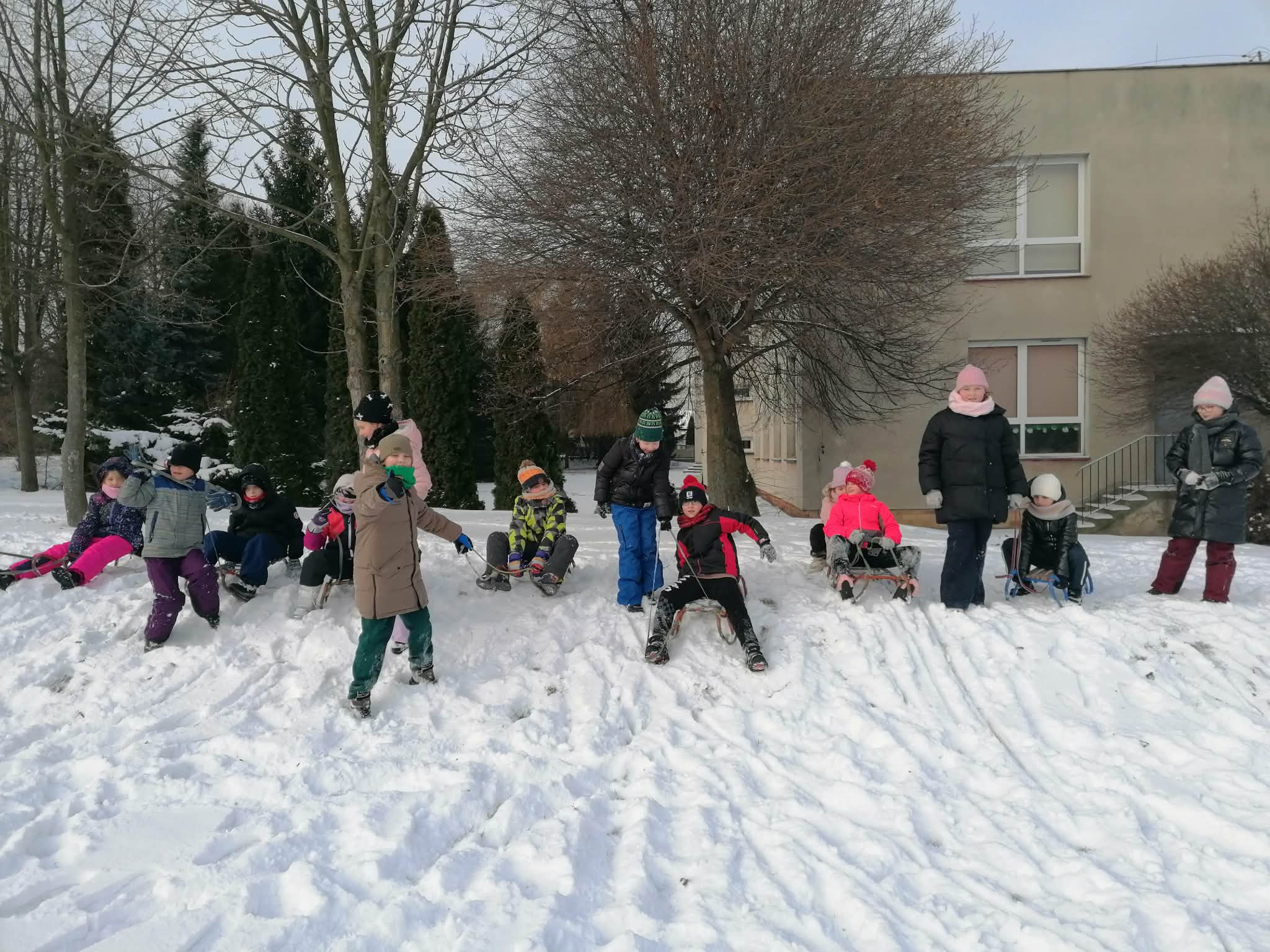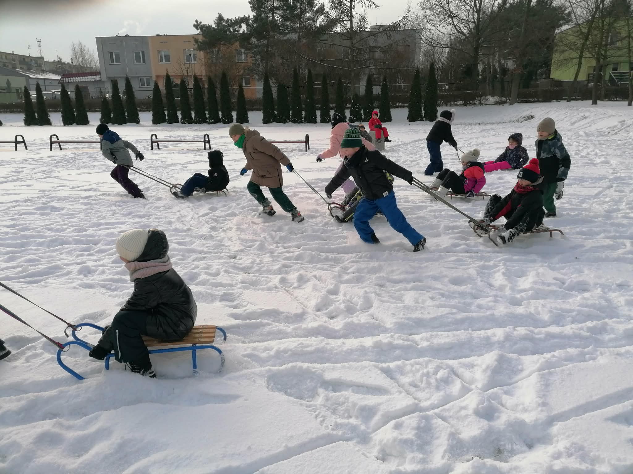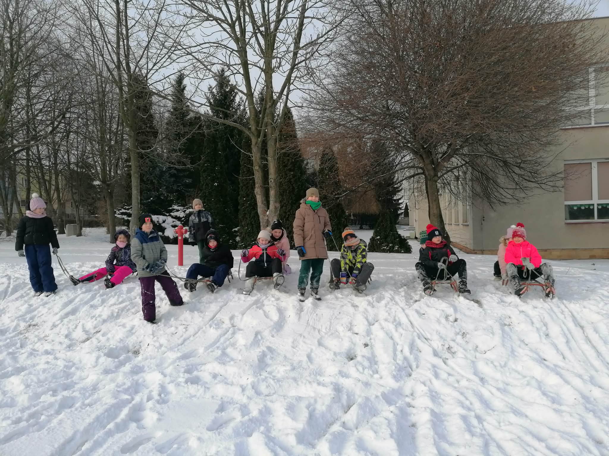 13 stycznia Klasa 3a zorganizowała zabawy zimowe na śniegu. Były wyścigi saneczkowych zaprzęg ów oraz zjazdy z górki.